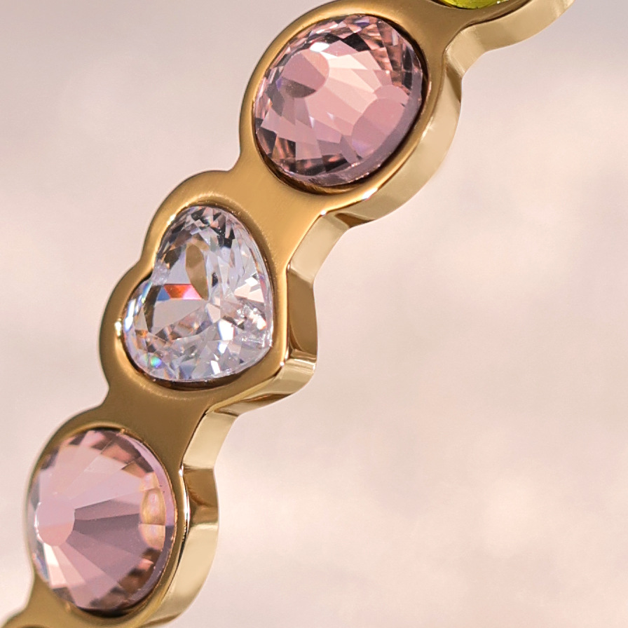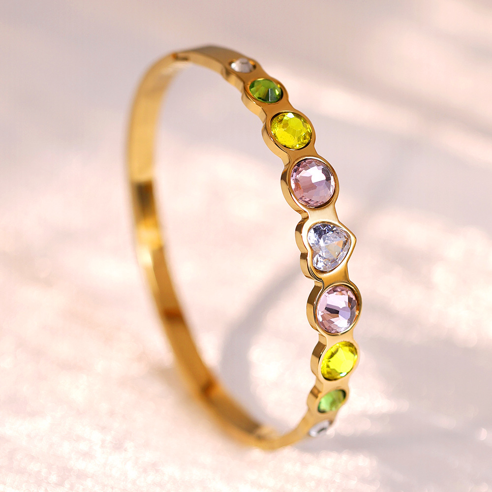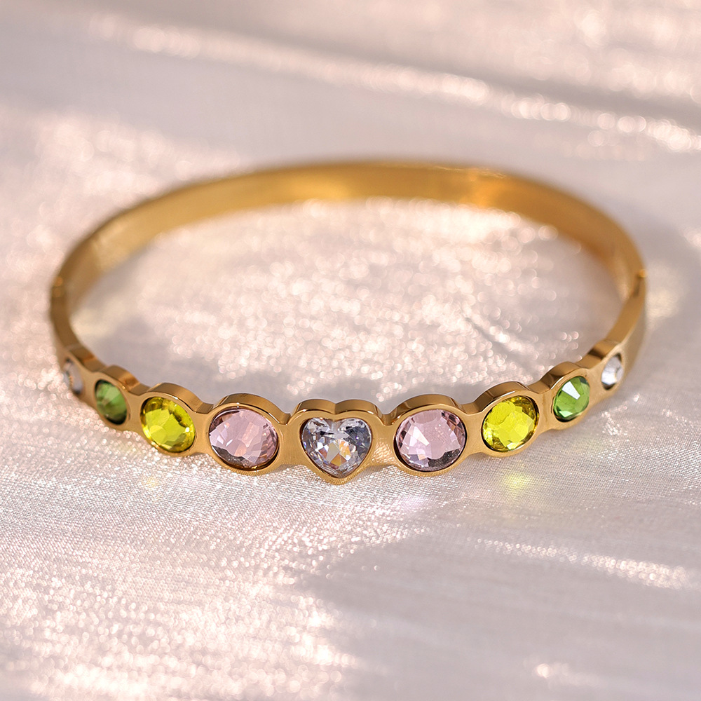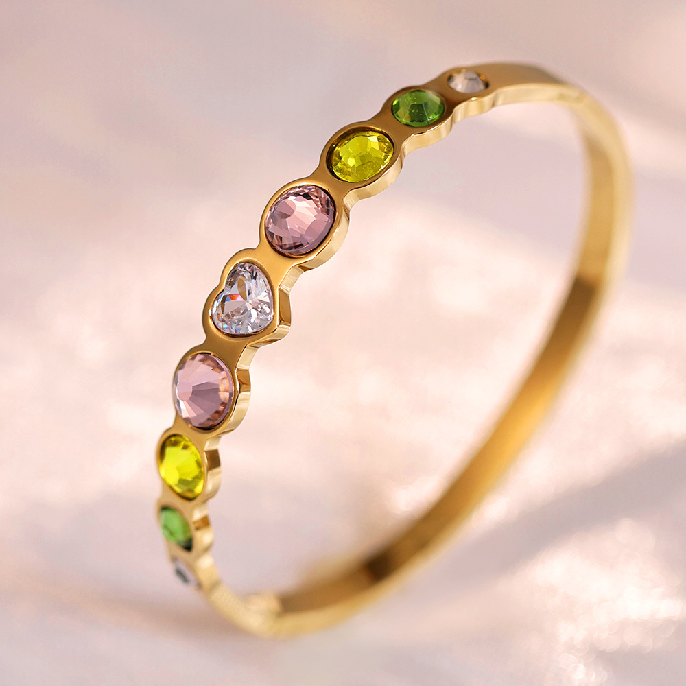 Titanium Steel Bangle gold color plated for woman & with rhinestone Inner Approx 60mm Sold By PC