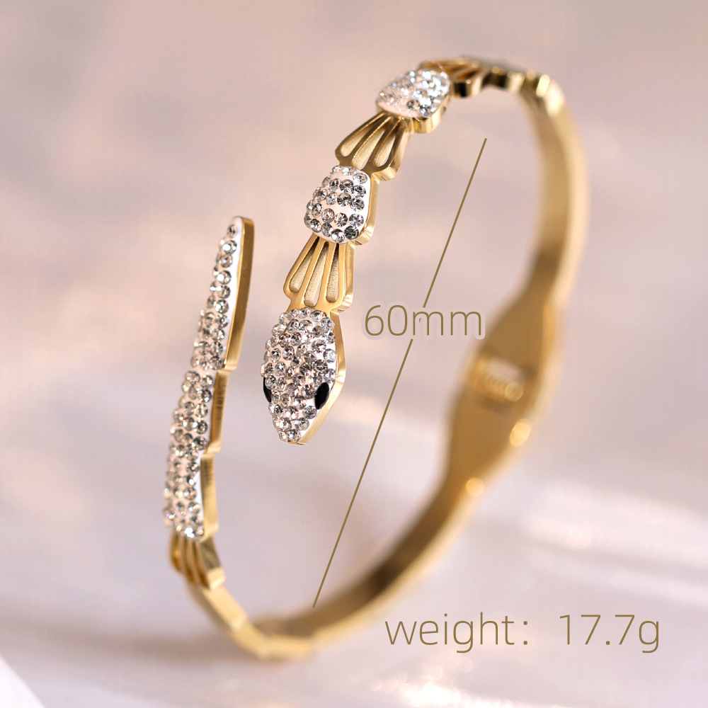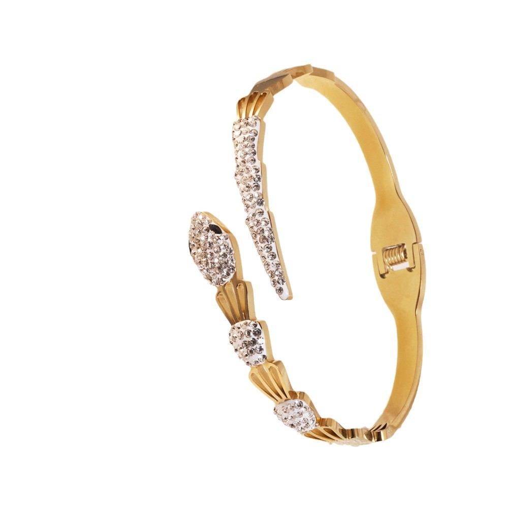 Titanium Steel Bangle Snake gold color plated for woman & with rhinestone Inner Approx 60mm Sold By PC