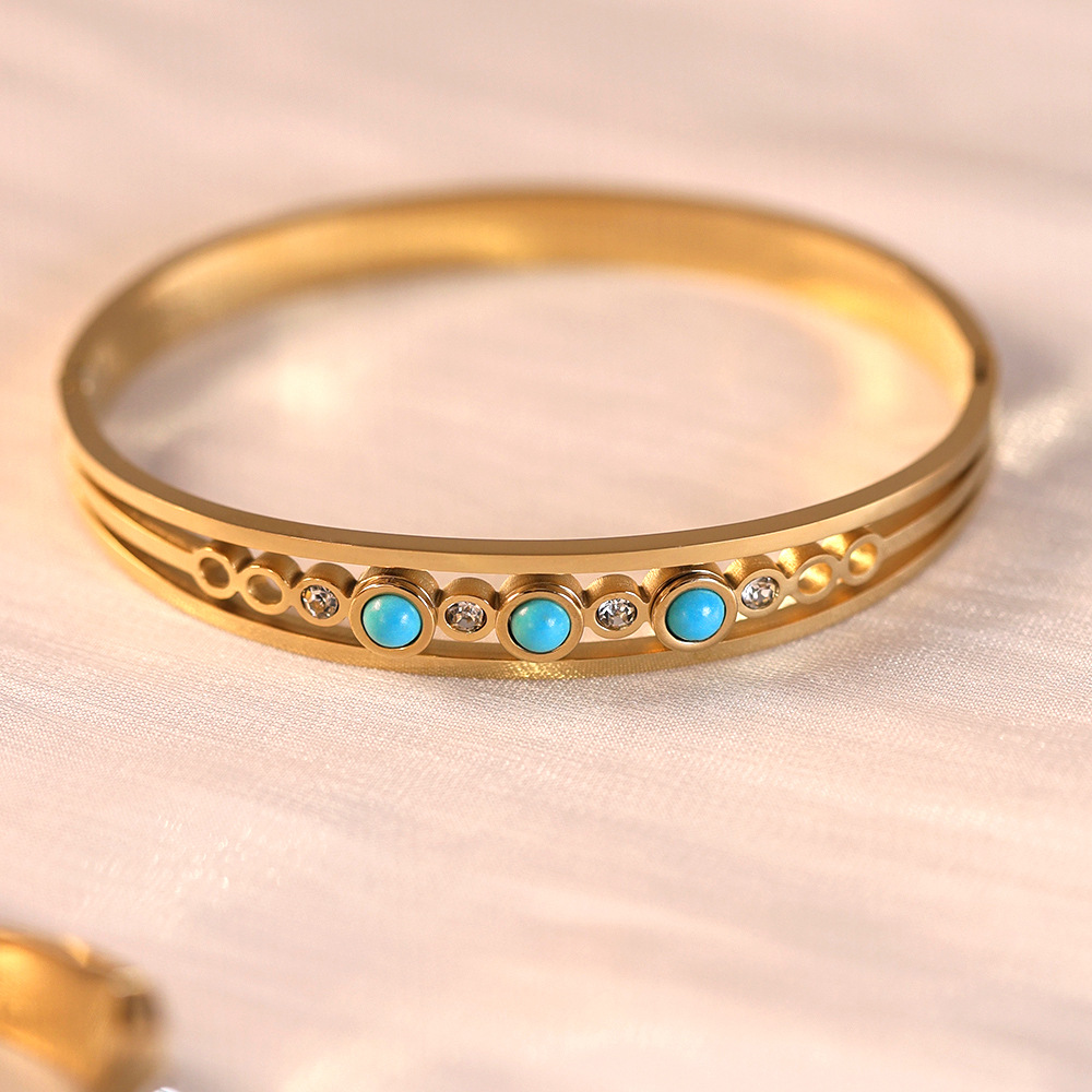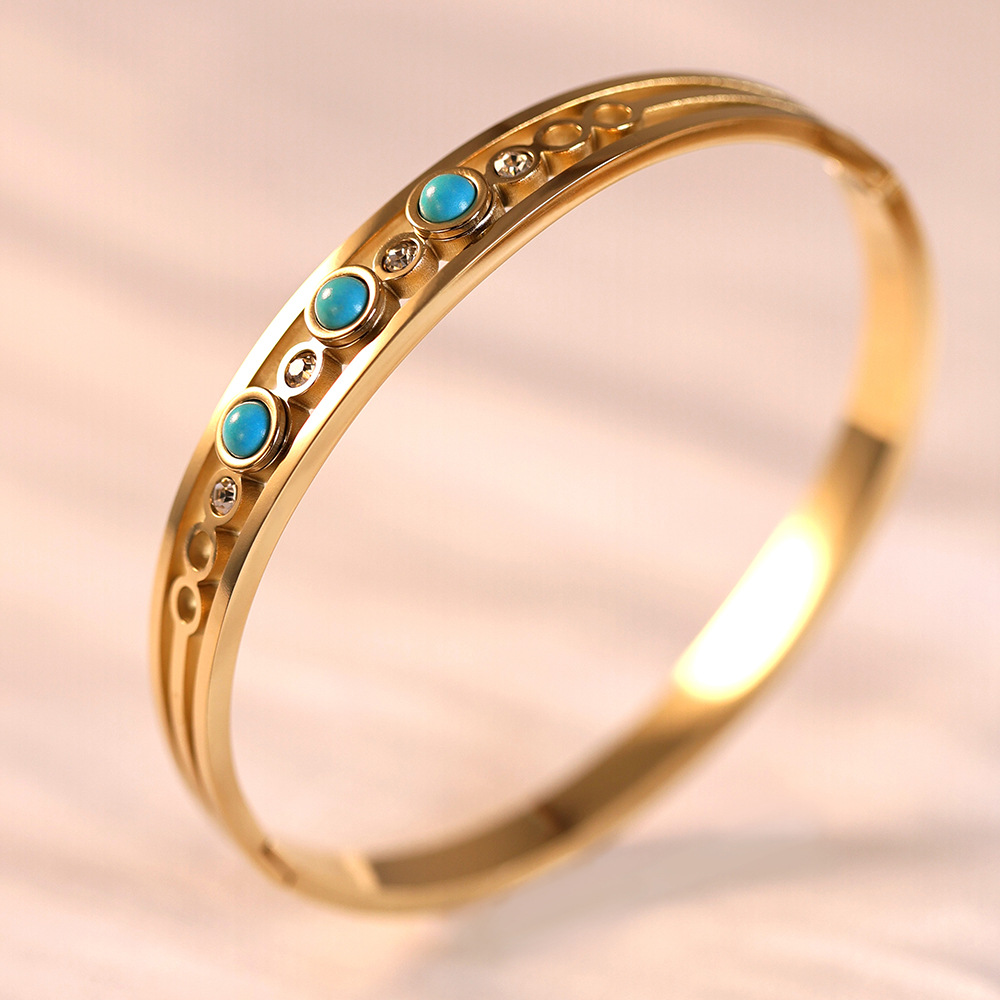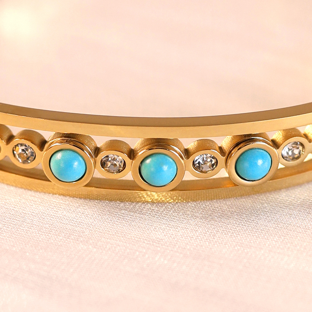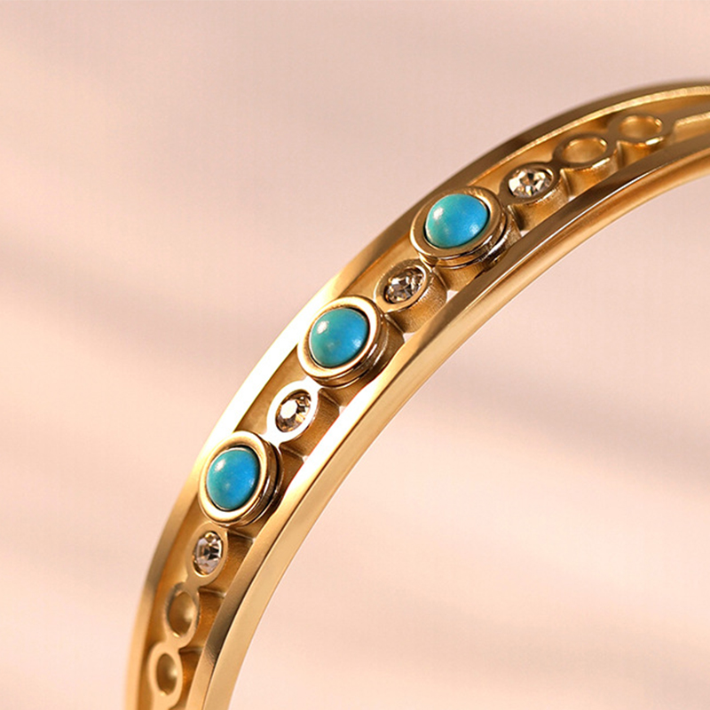 Titanium Steel Bangle with Sapphire​ gold color plated micro pave cubic zirconia & for woman Inner Approx 60mm Sold By PC
