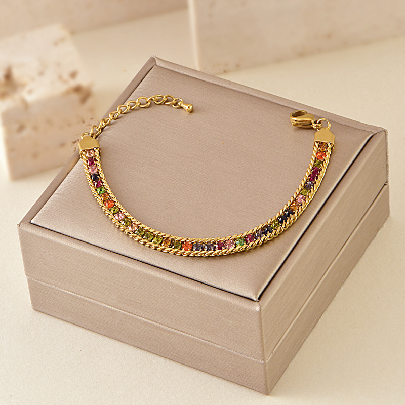 Titanium Steel Bracelet with Cubic Zirconia with 4cm extender chain plated fashion jewelry & for woman .6cm Length 17 cm Sold By PC