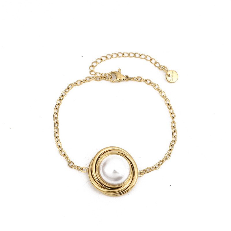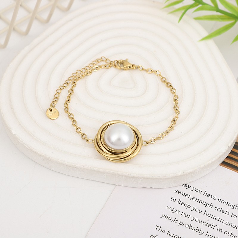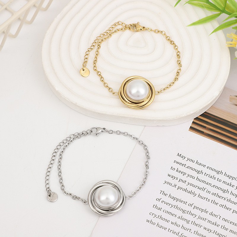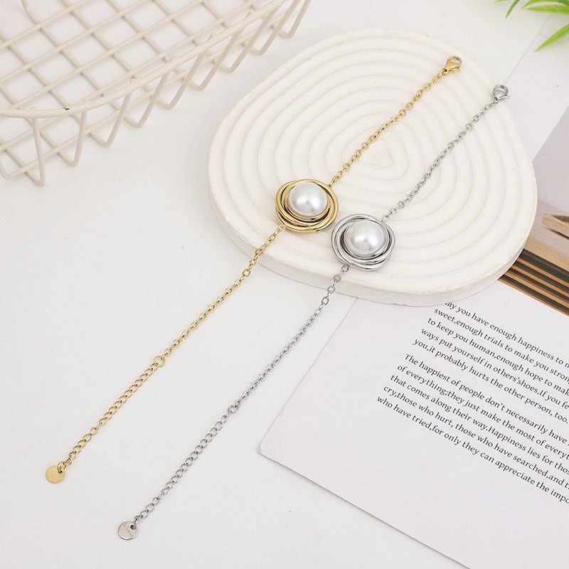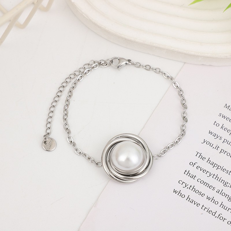 Titanium Steel Bracelet & Bangle with ABS Plastic Pearl plated fashion jewelry & for woman Length Approx 17.8 cm Sold By PC