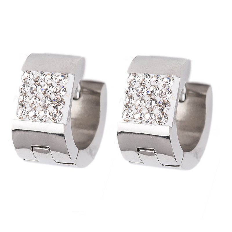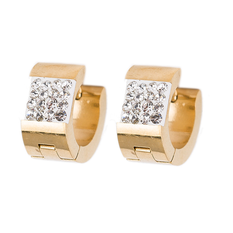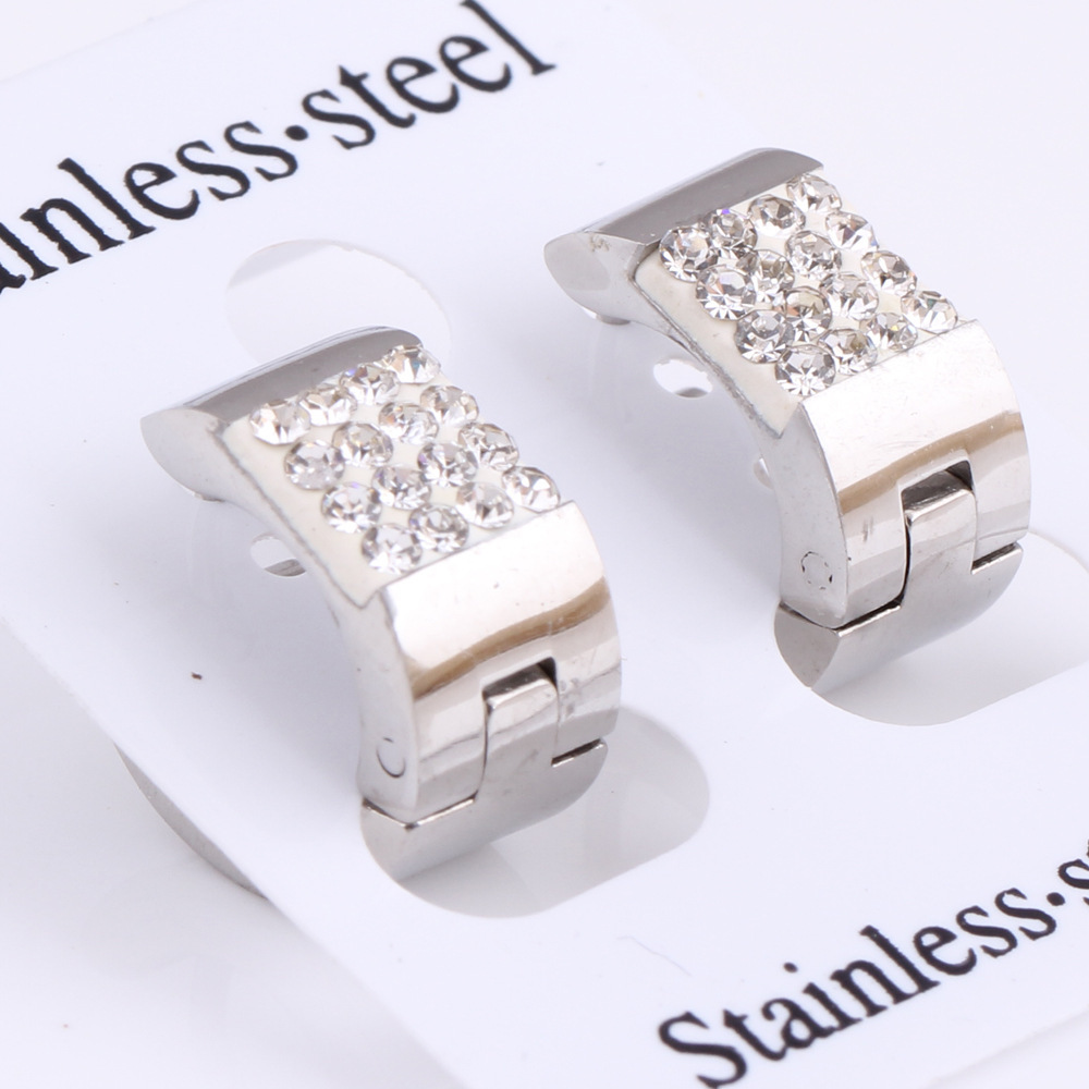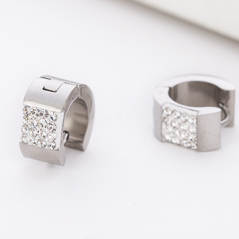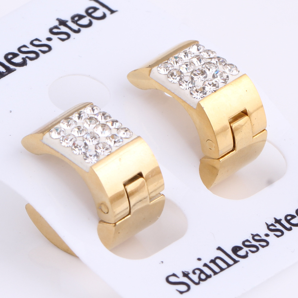 Titanium Steel Huggie Hoop Earring plated for woman & with rhinestone 10mm Sold By Pair