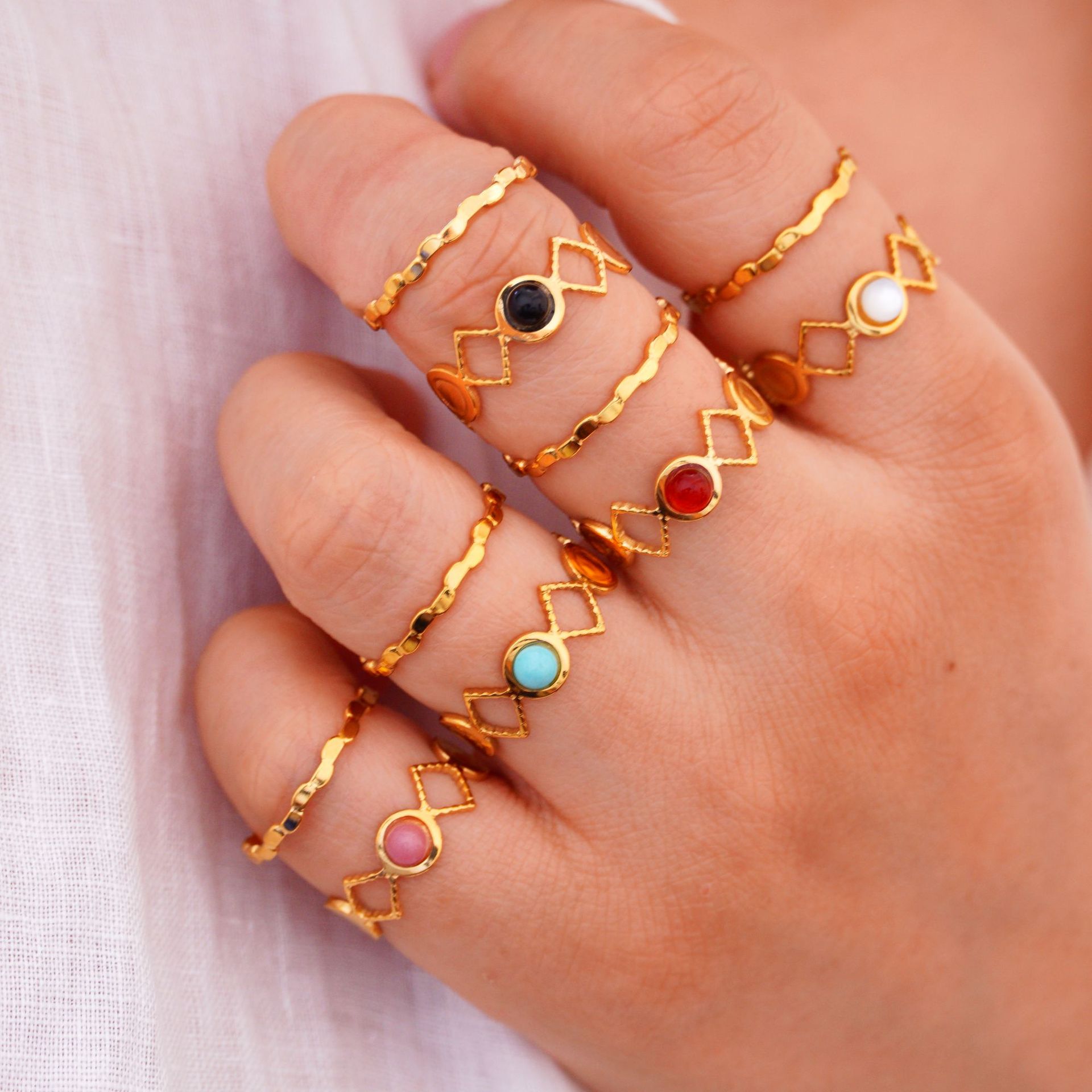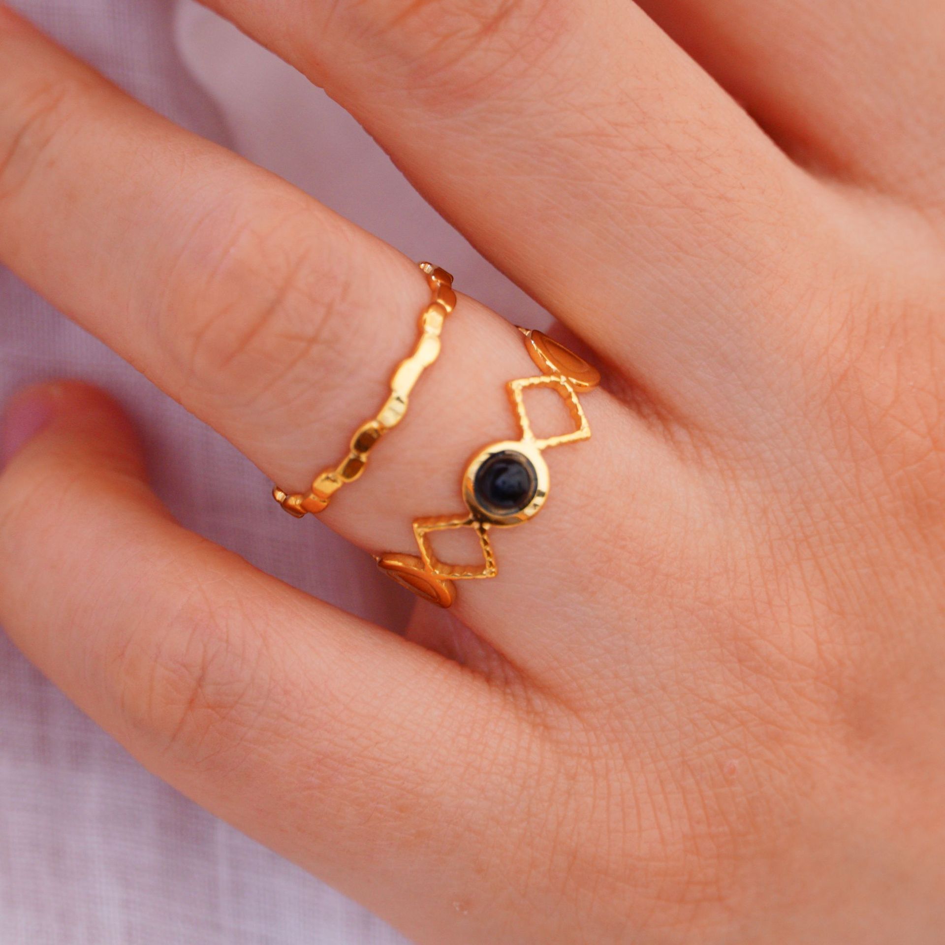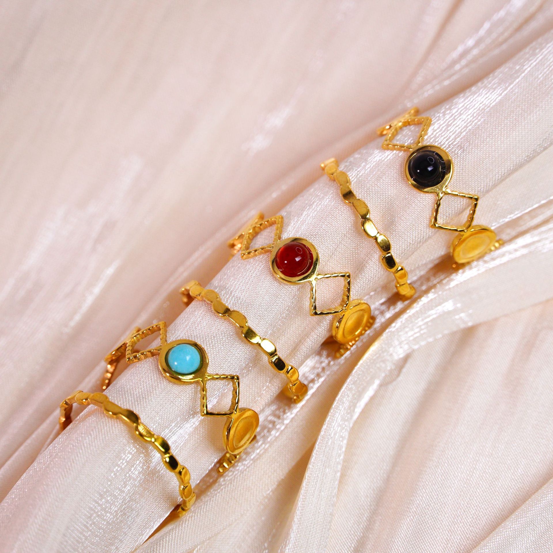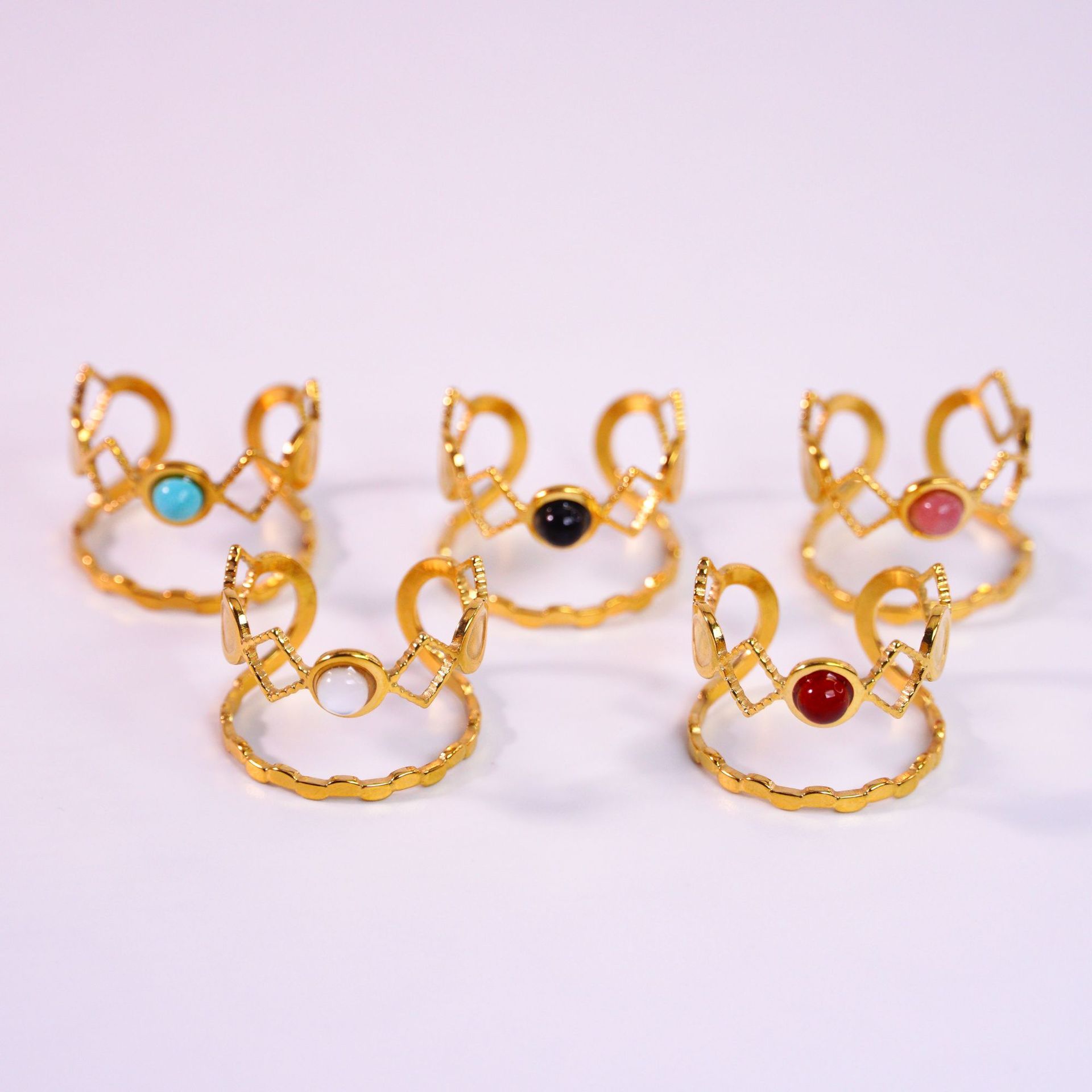 Titanium Steel Cuff Finger Ring with Gemstone gold color plated & Unisex & hollow US Ring Sold By PC