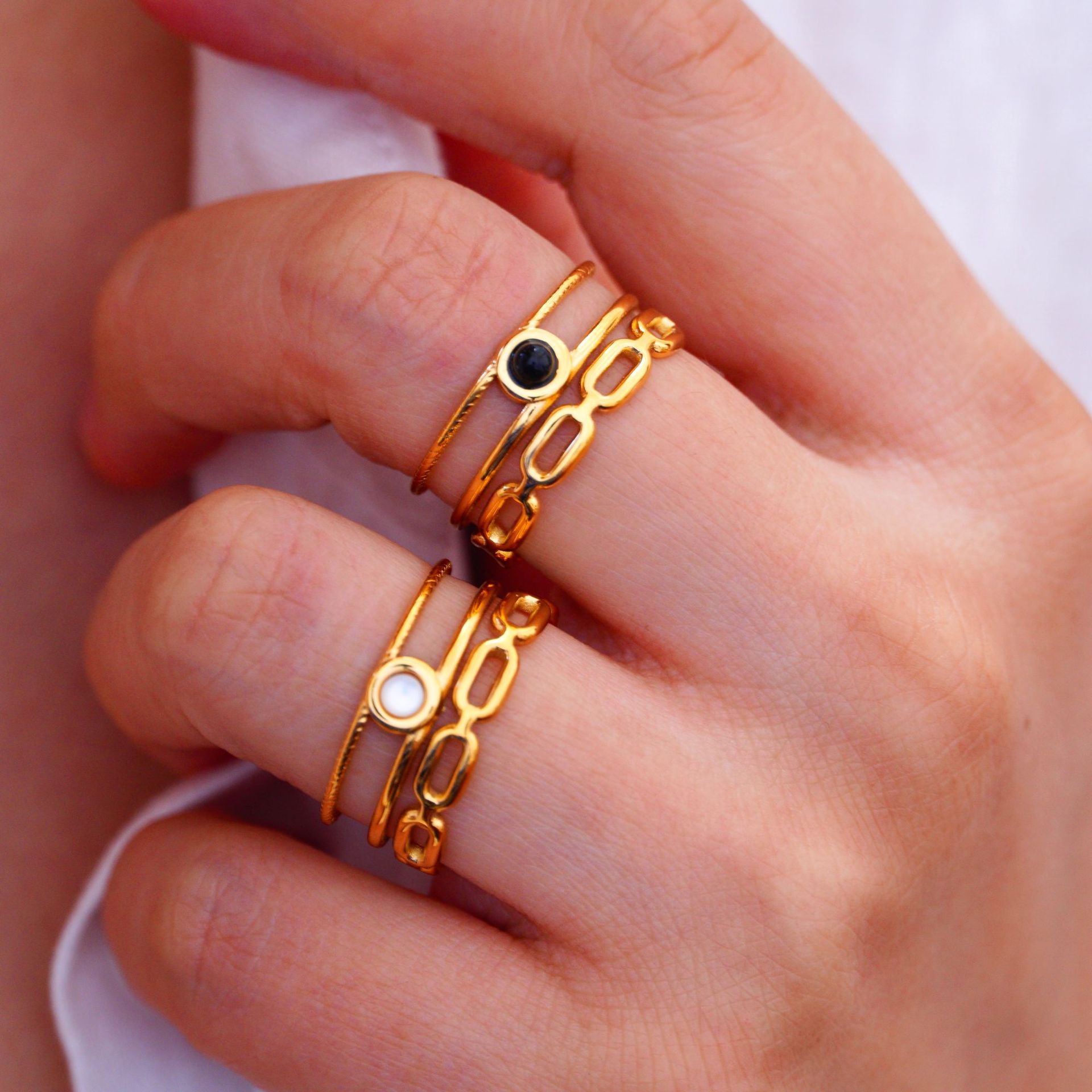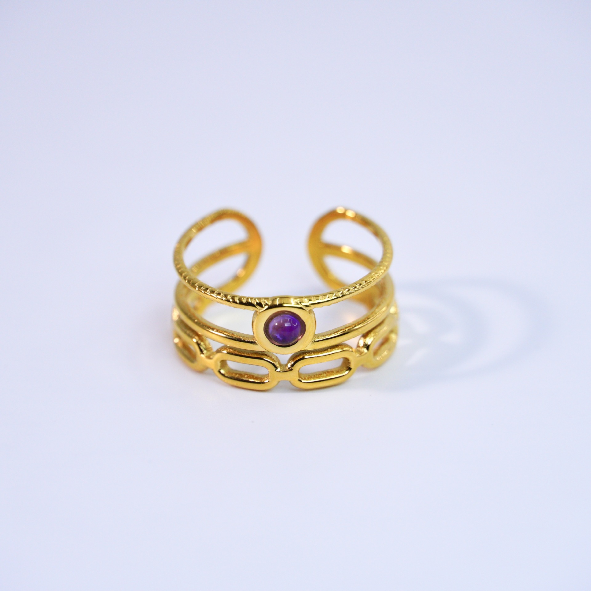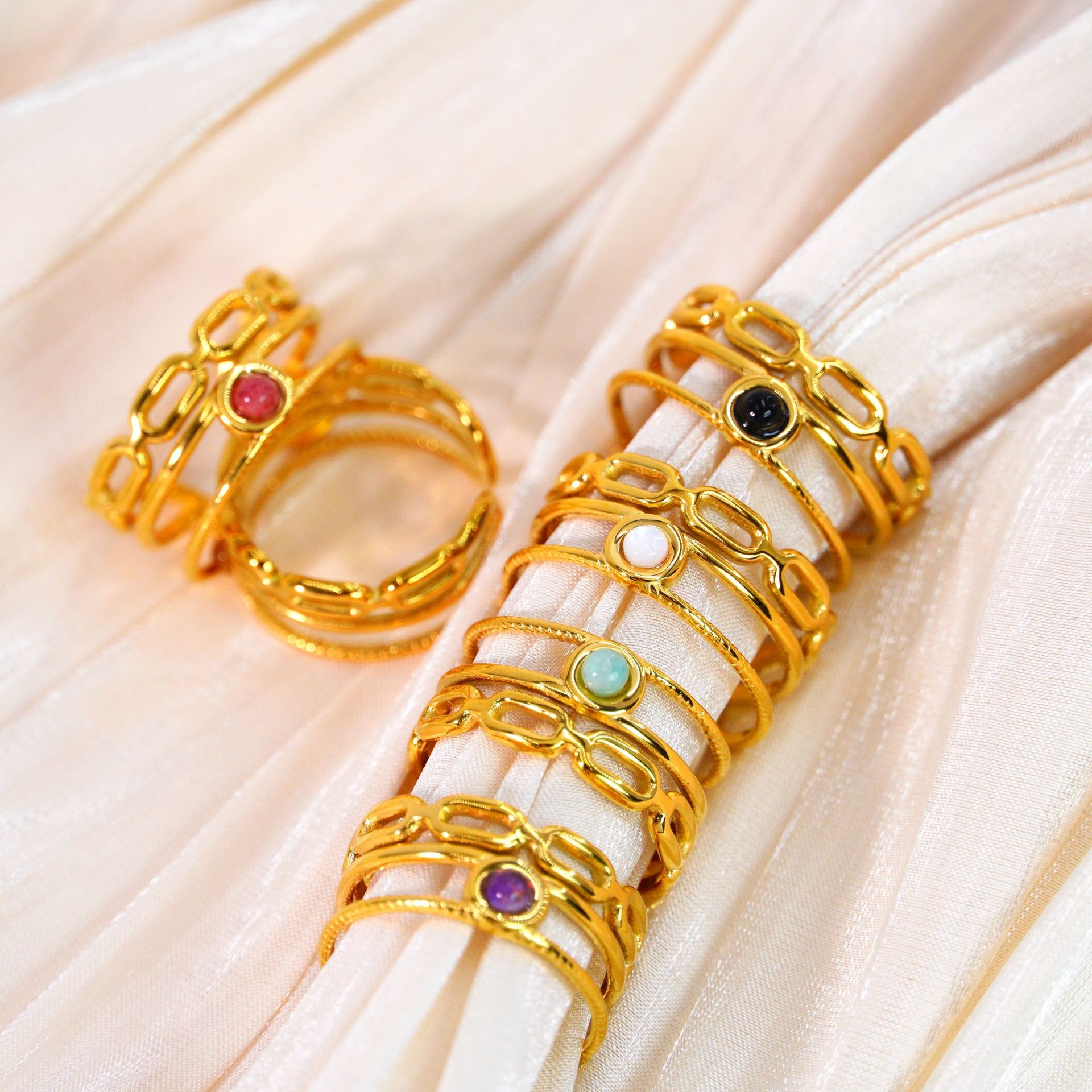 Titanium Steel Cuff Finger Ring with Gemstone Geometrical Pattern gold color plated & for woman & hollow US Ring Sold By PC