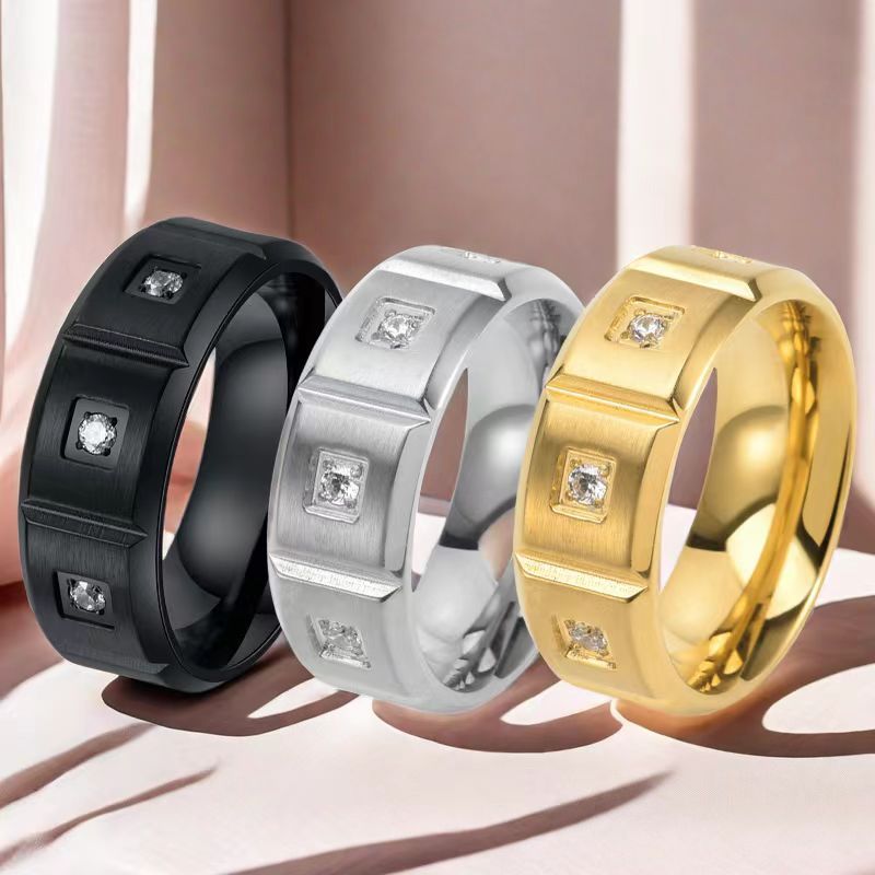 Titanium Steel Finger Ring plated Unisex & with rhinestone US Ring Sold By PC