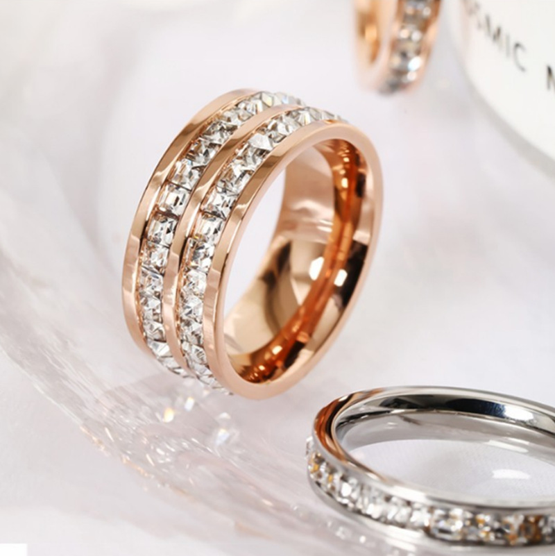 Titanium Steel Finger Ring plated Unisex & micro pave cubic zirconia US Ring Sold By PC