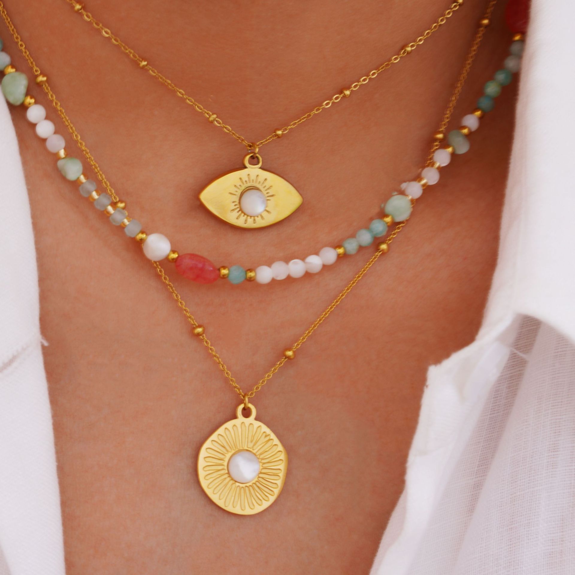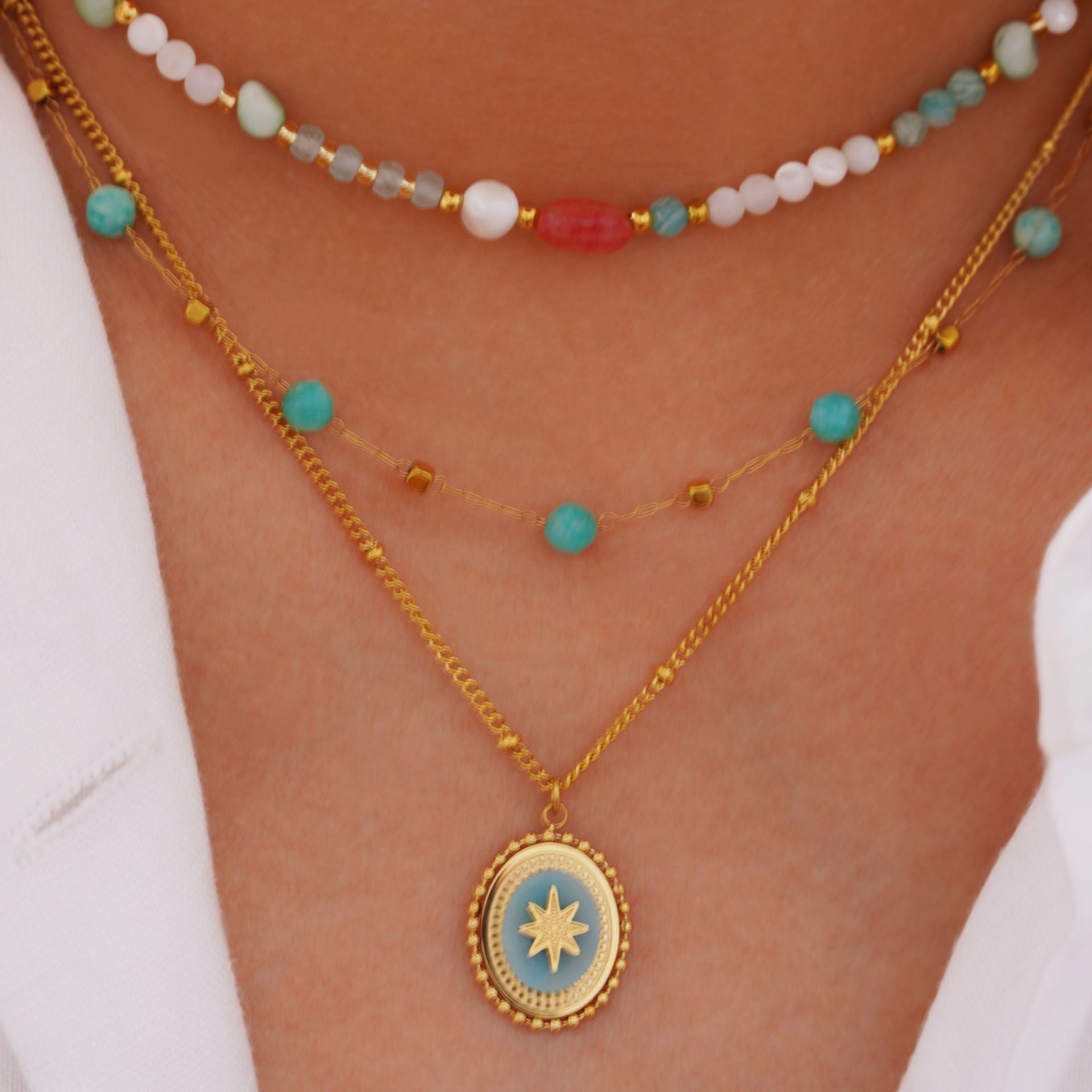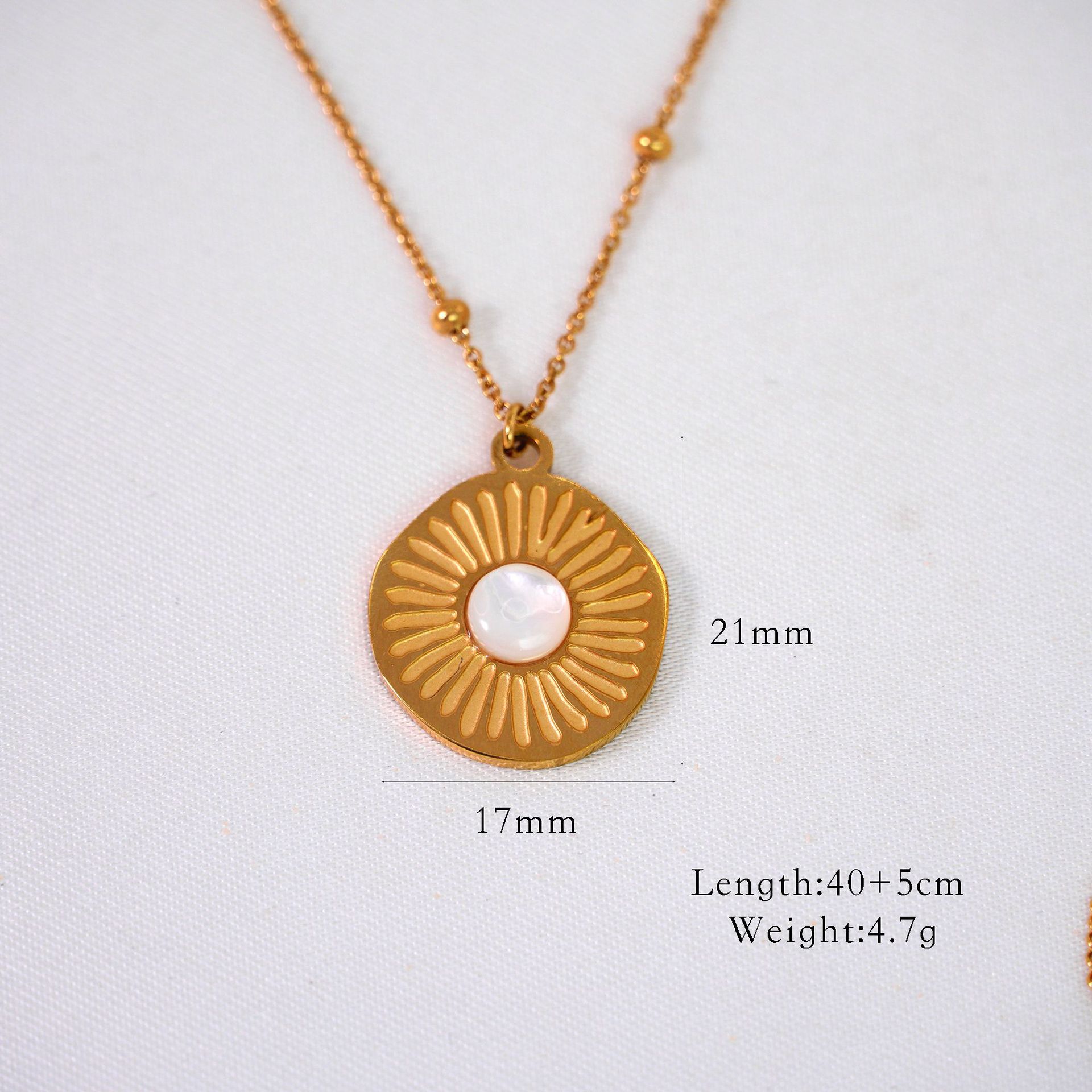 Titanium Steel Necklace with ​Amazonite​ & White Shell gold color plated & for woman Sold By PC