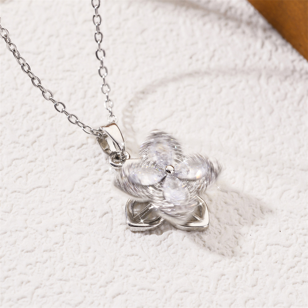 Titanium Steel Necklace with Brass Four Leaf Clover plated fashion jewelry & micro pave cubic zirconia & for woman Sold By PC