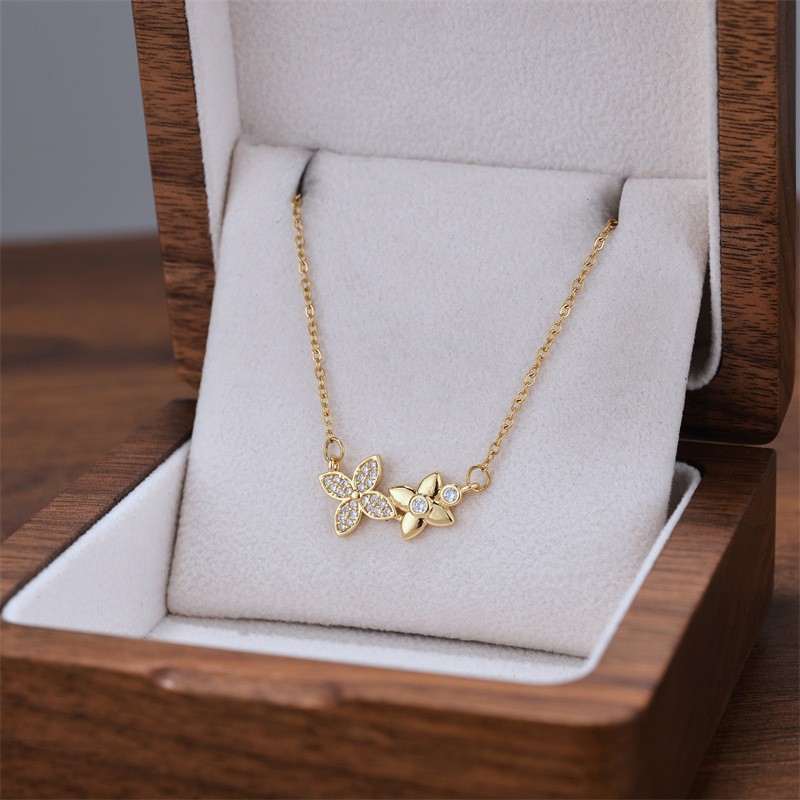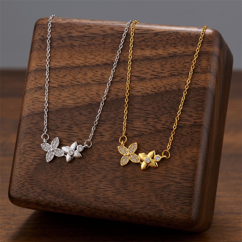Titanium Steel Necklace with Cubic Zirconia plated fashion jewelry & for woman Sold By PC