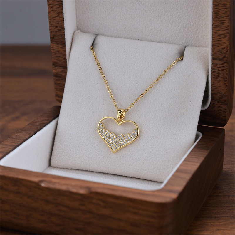 Titanium Steel Necklace with Cubic Zirconia plated fashion jewelry & for woman Sold By PC