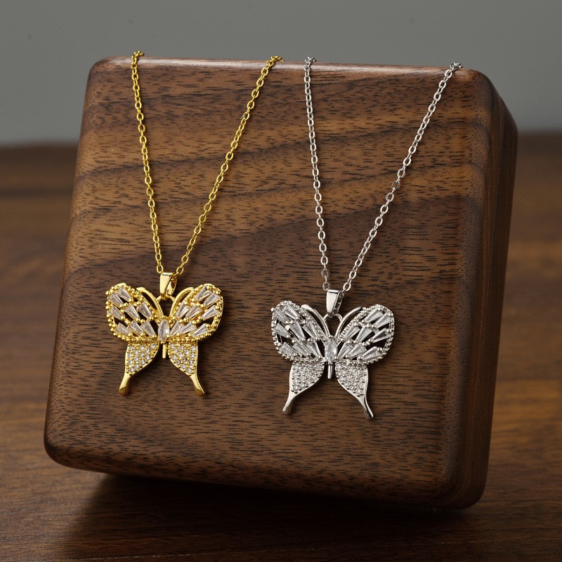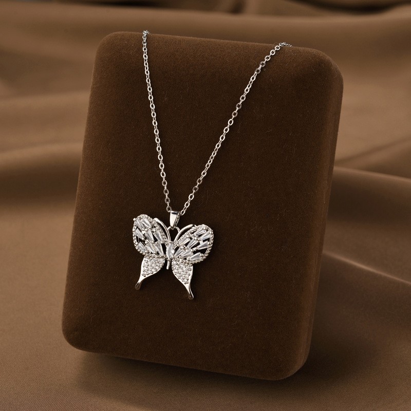 Titanium Steel Necklace with Cubic Zirconia Bowknot plated fashion jewelry & for woman Sold By PC