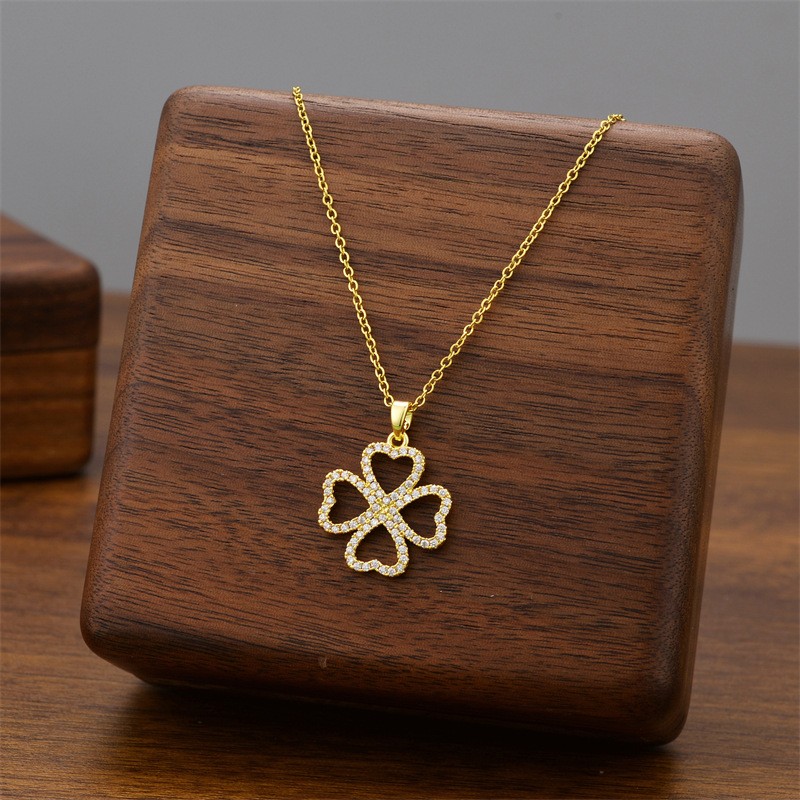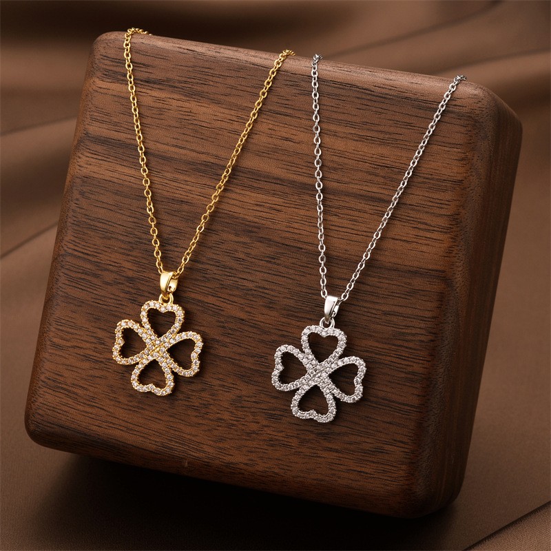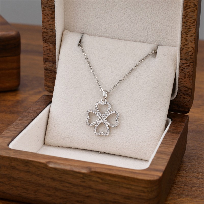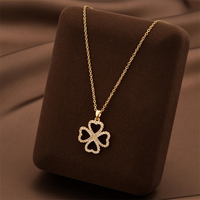 Titanium Steel Necklace with Cubic Zirconia plated fashion jewelry & for woman Sold By PC