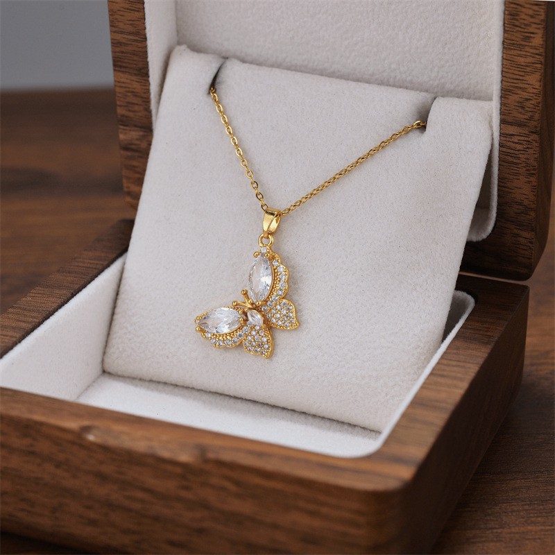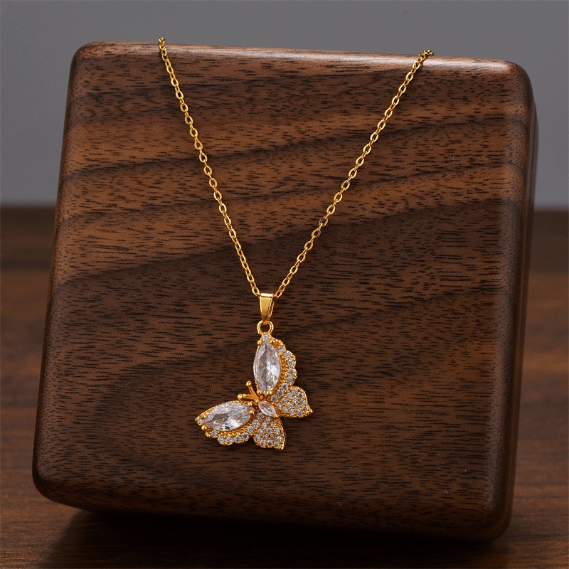 Titanium Steel Necklace with Cubic Zirconia plated fashion jewelry & for woman Sold By PC