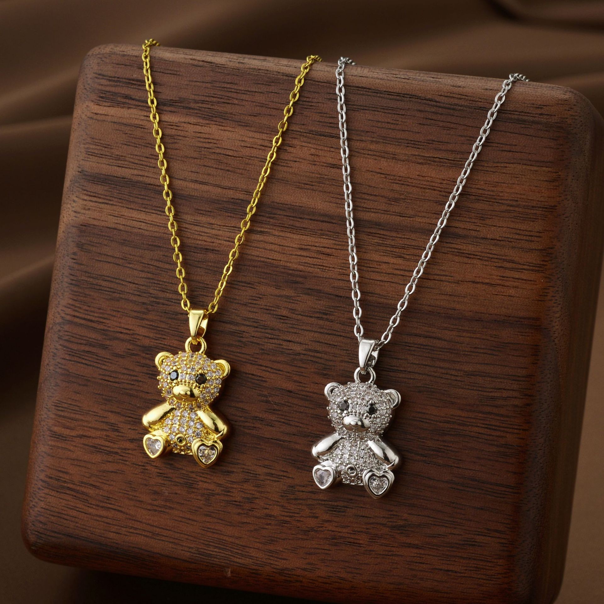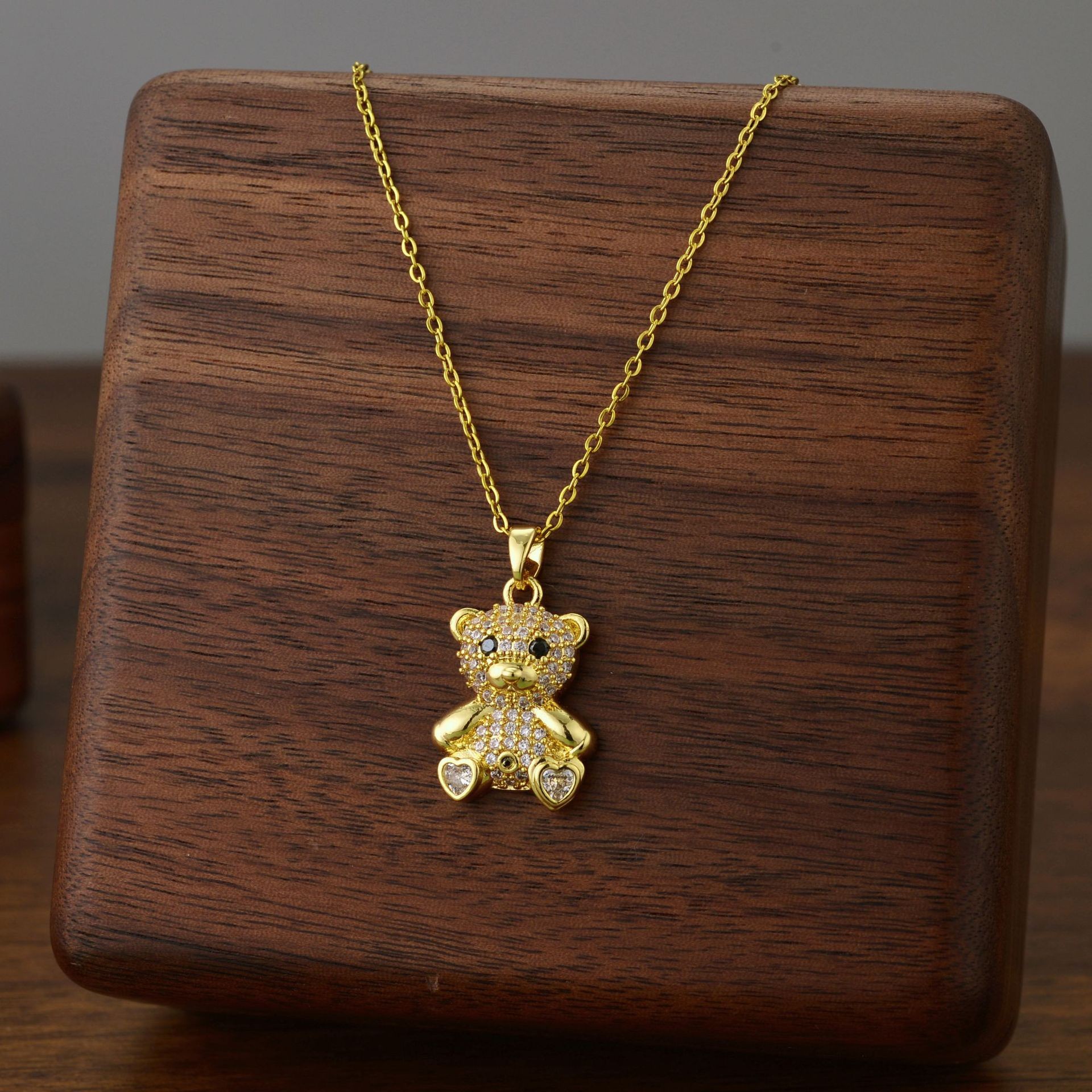 Titanium Steel Necklace with Cubic Zirconia Bear plated fashion jewelry & for woman Sold By PC