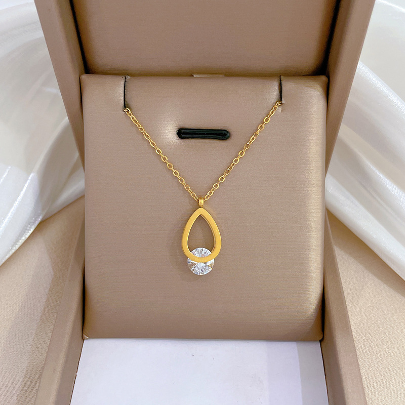 Titanium Steel Necklace with Cubic Zirconia plated fashion jewelry & for woman & hollow golden Length 21-50 cm Sold By PC