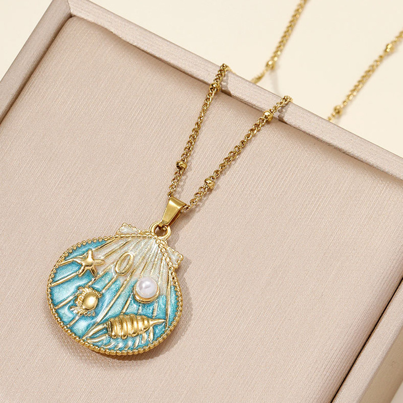 Titanium Steel Necklace with Plastic Pearl plated fashion jewelry & enamel Approx 1.2mm Sold By PC