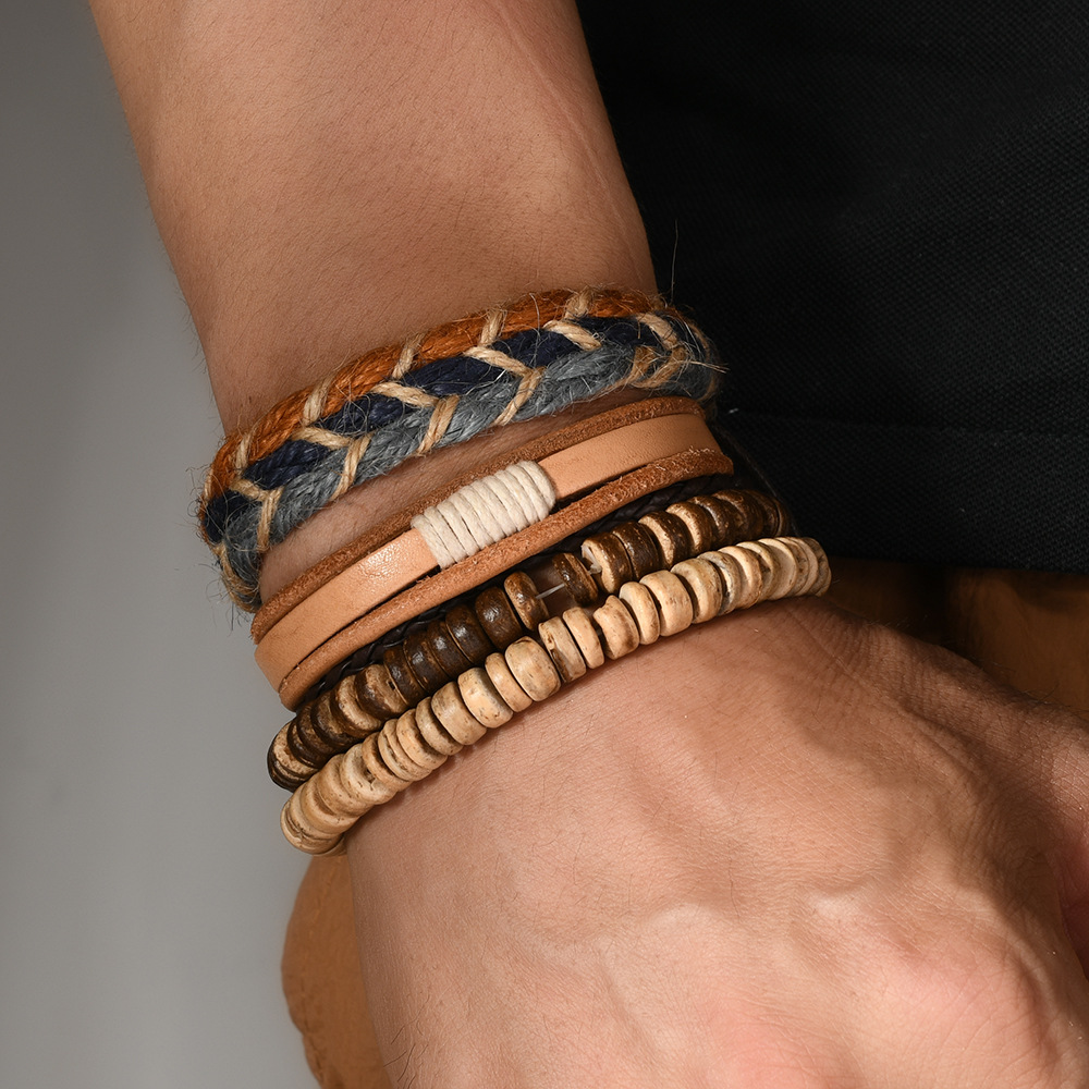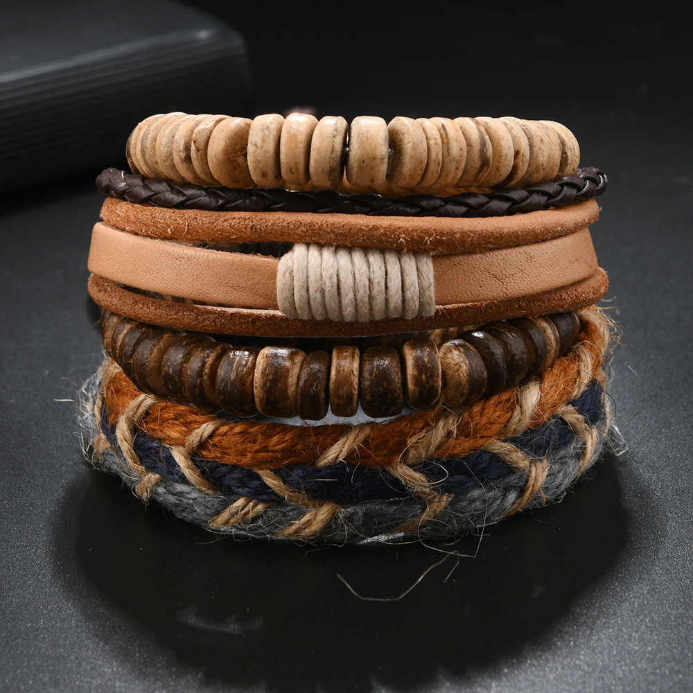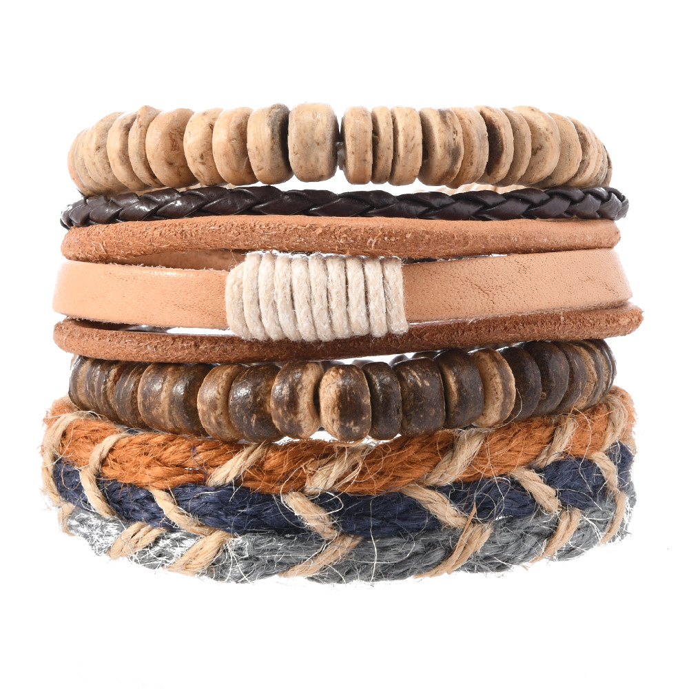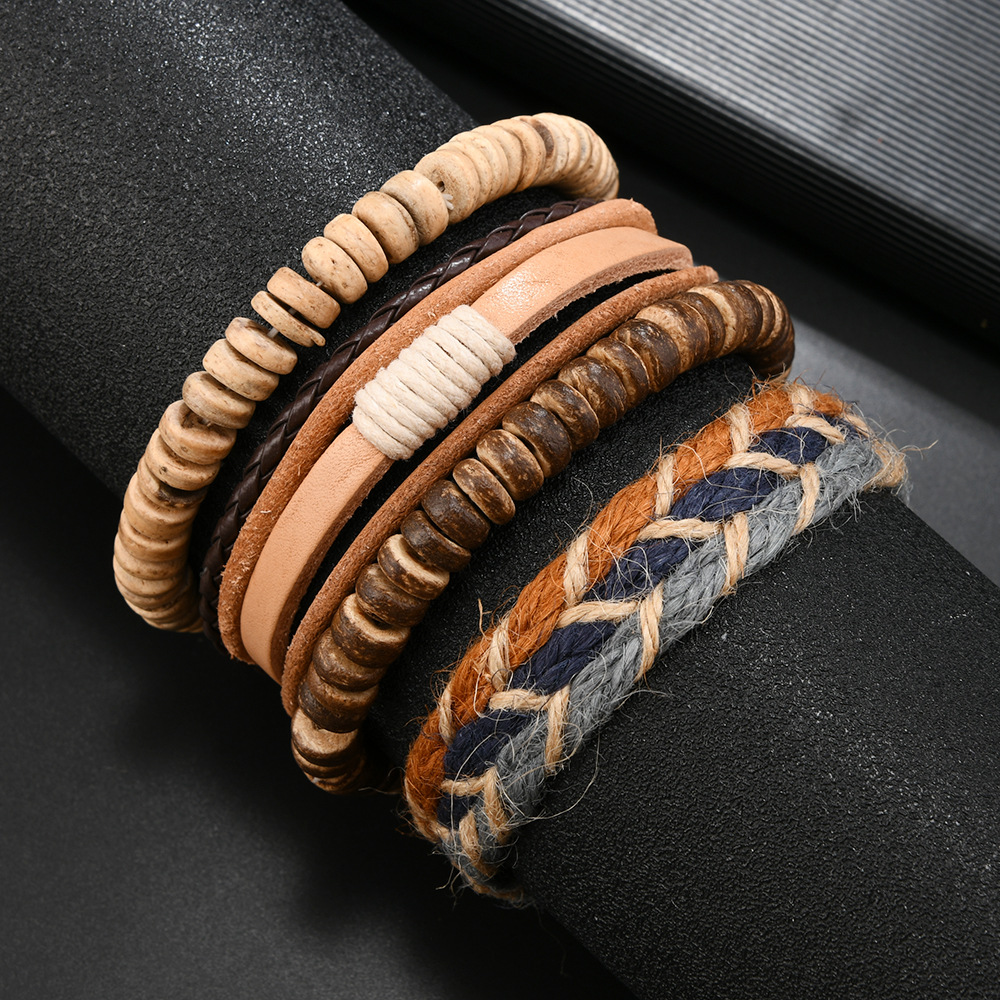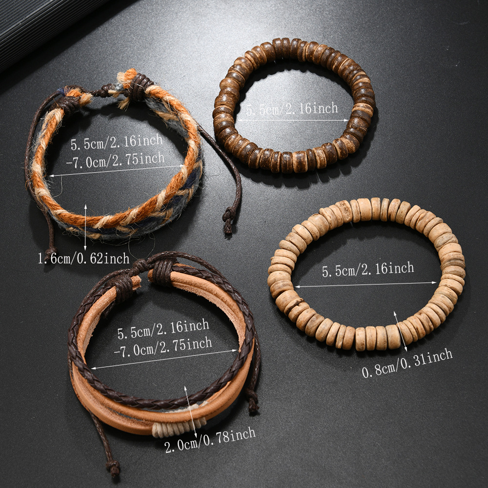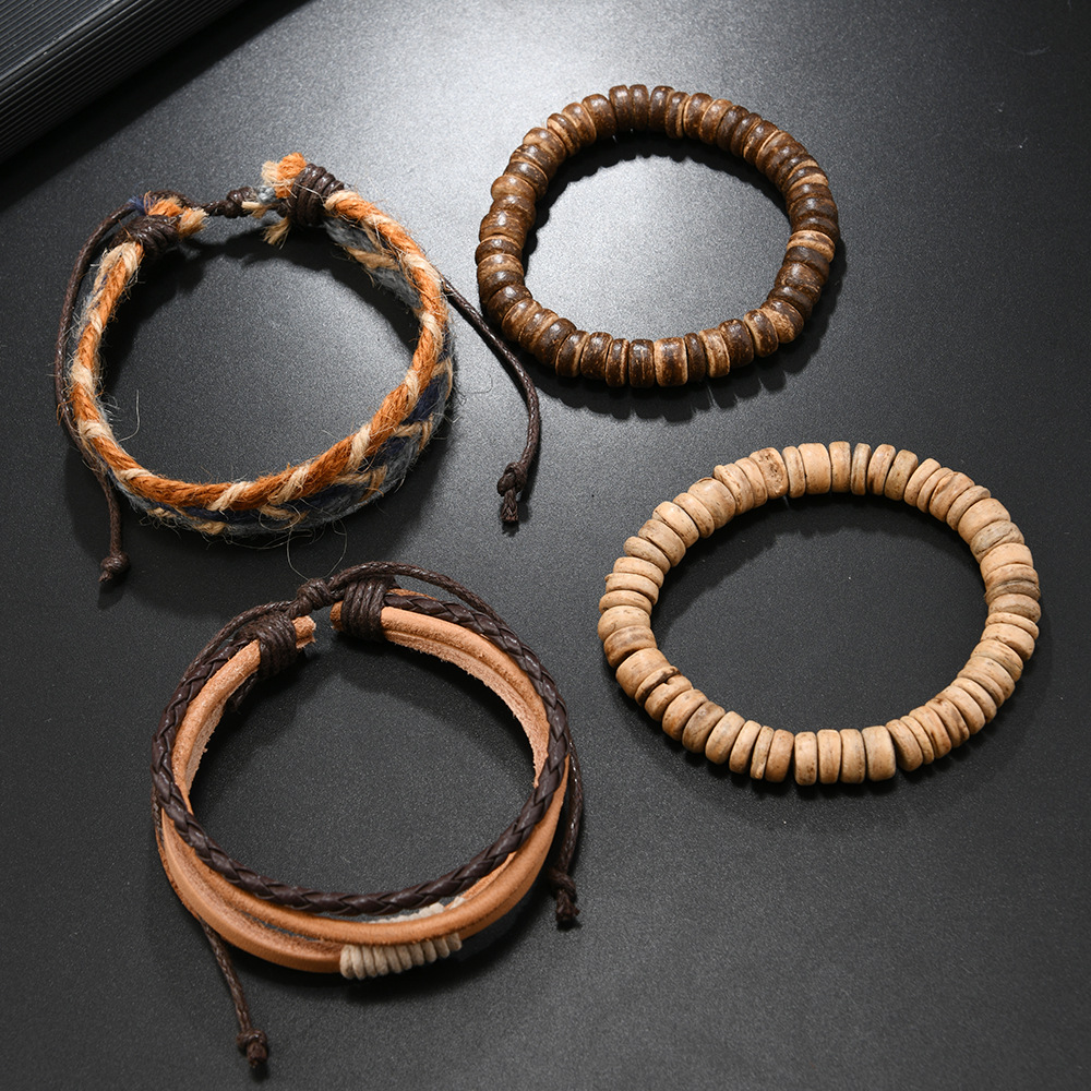 Wrap Bracelet Cowhide with Linen & Coconut & Wax Cord handmade 4 pieces & fashion jewelry & for man mixed colors Sold By Set