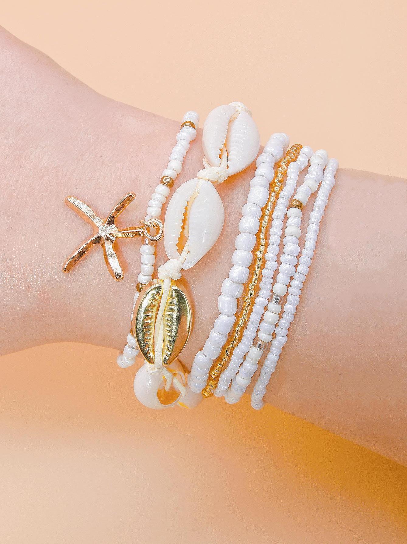 Zinc Alloy Bracelet Set with Shell & Glass Seed Beads handmade ocean design & for woman Sold By Set
