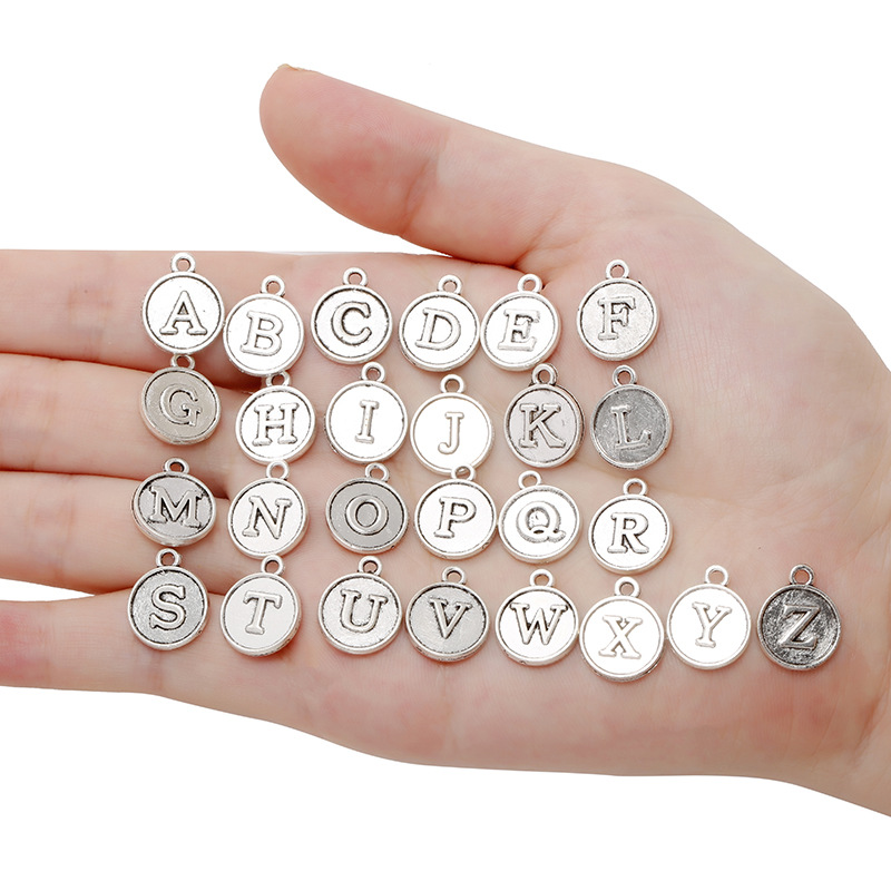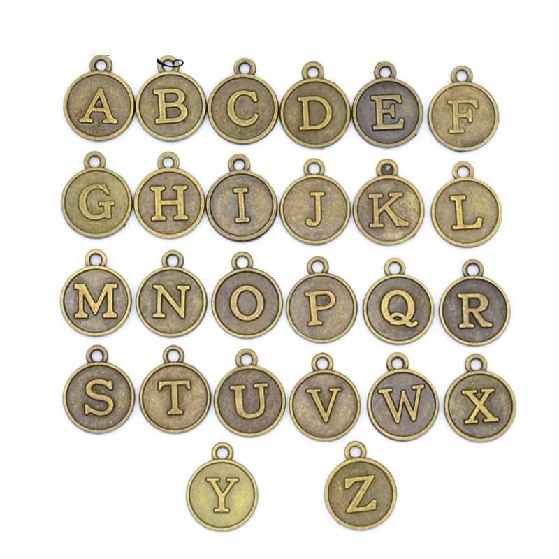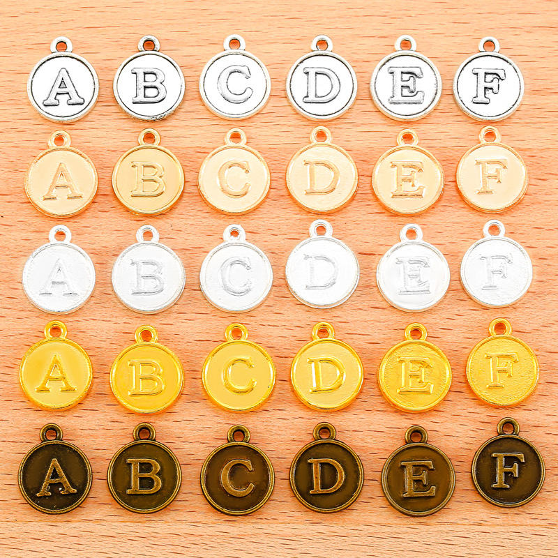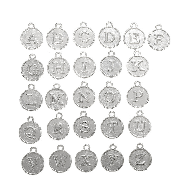 Zinc Alloy Alphabet and number Pendants Flat Round plated DIY & with letter pattern Sold By Set