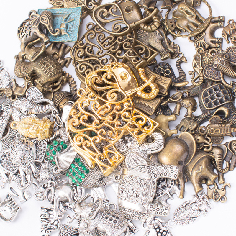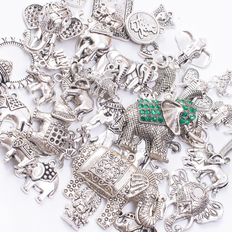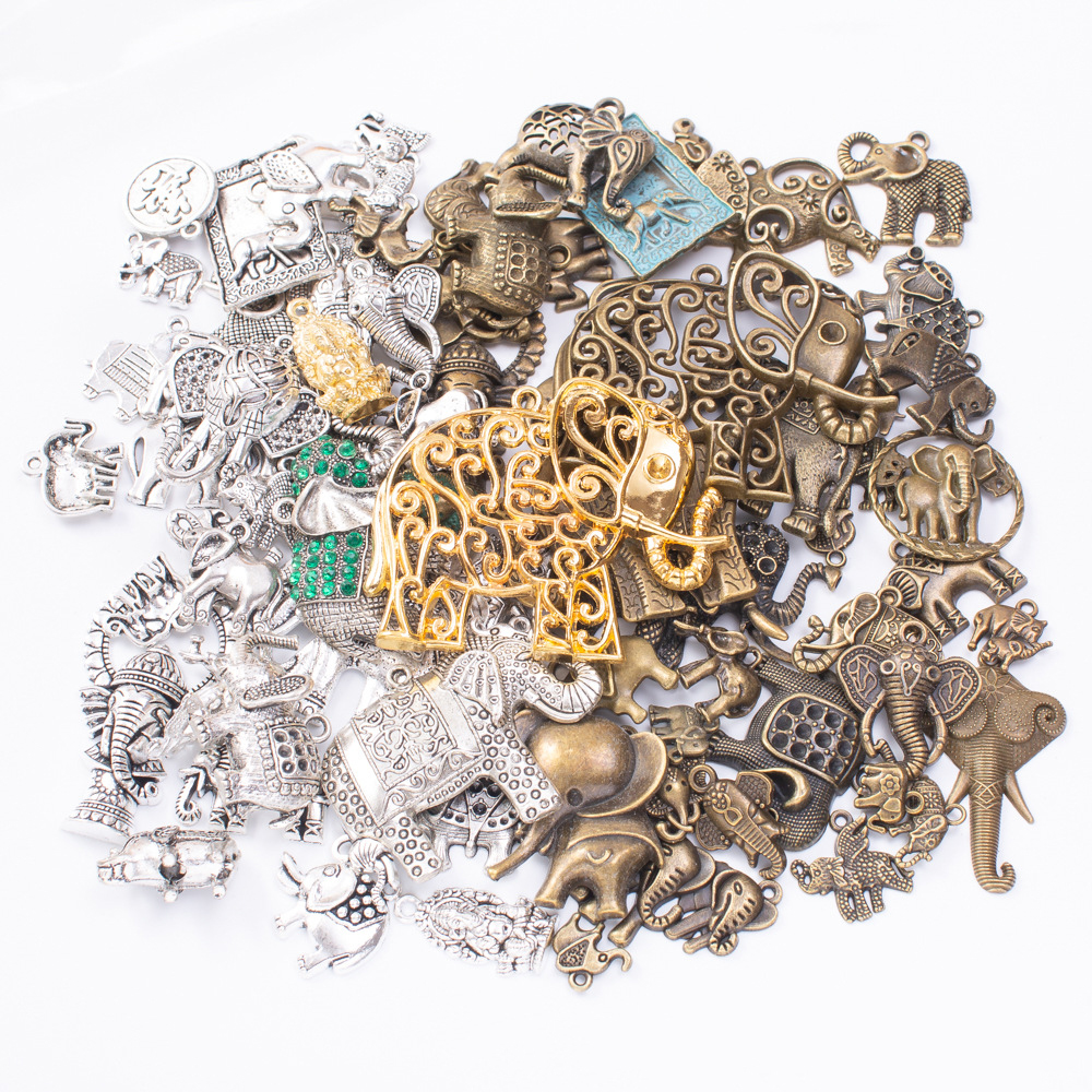 Zinc Alloy Animal Pendants Elephant plated mixed pattern & DIY & with rhinestone pendant length 10-60mm Sold By Bag
