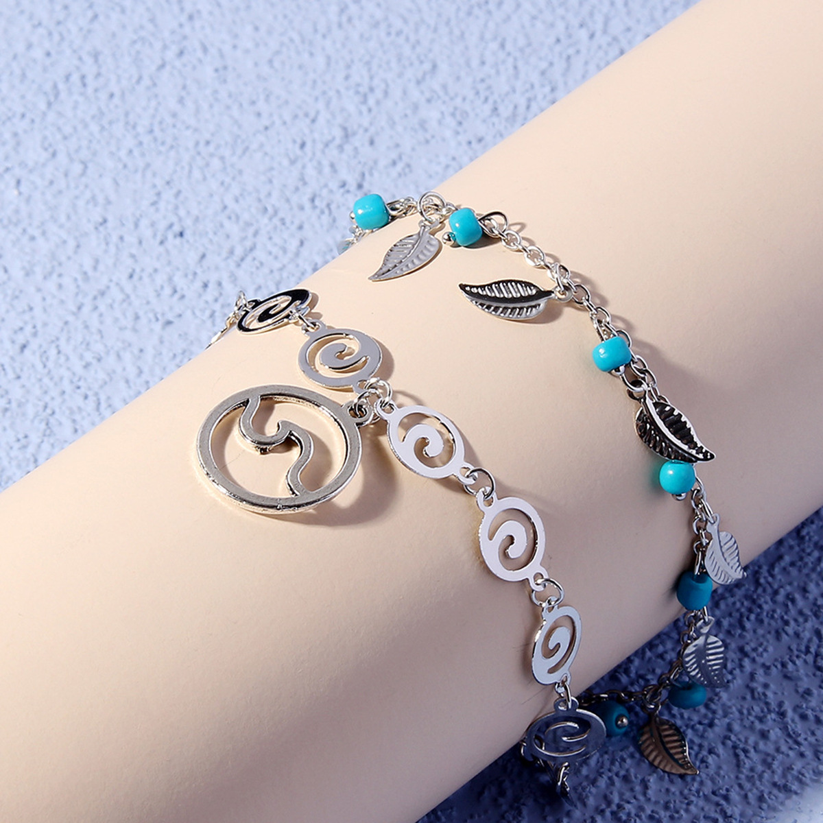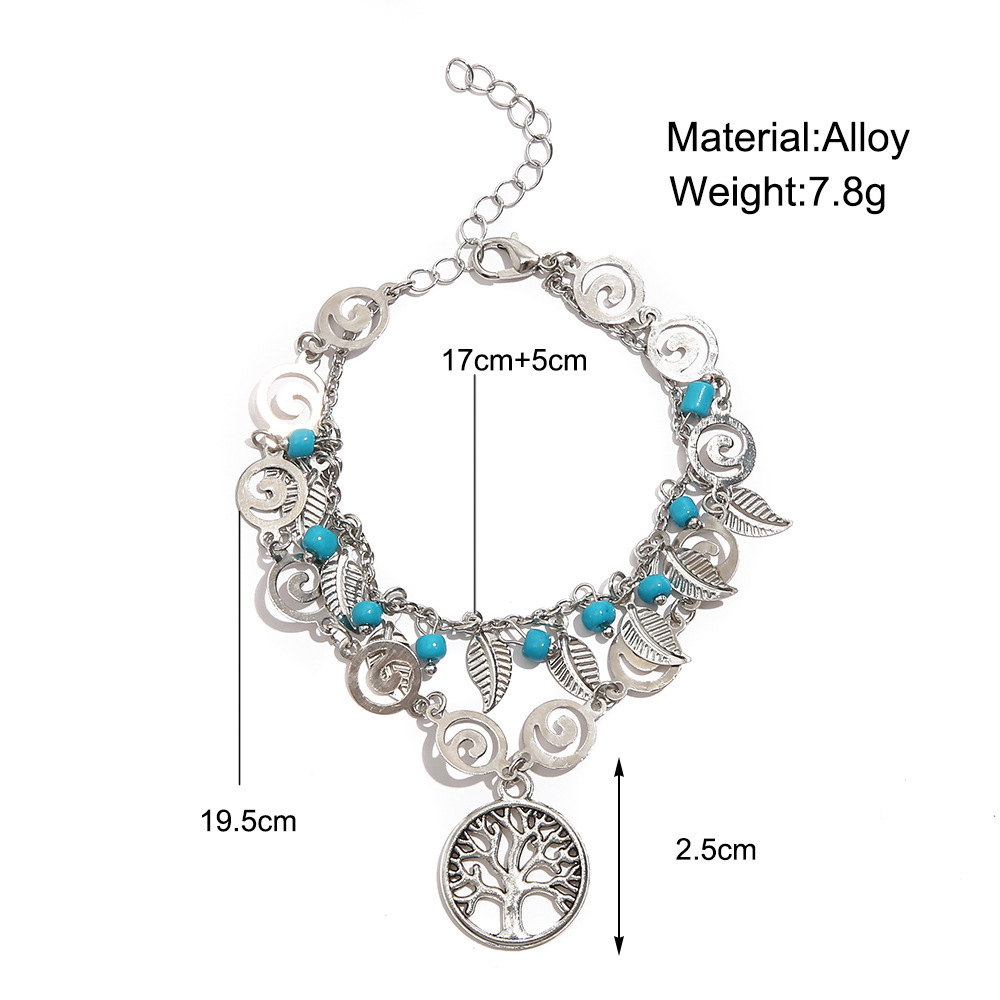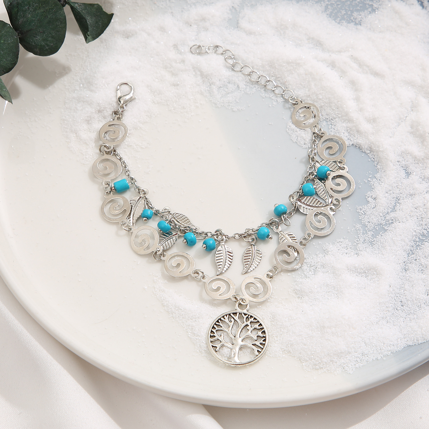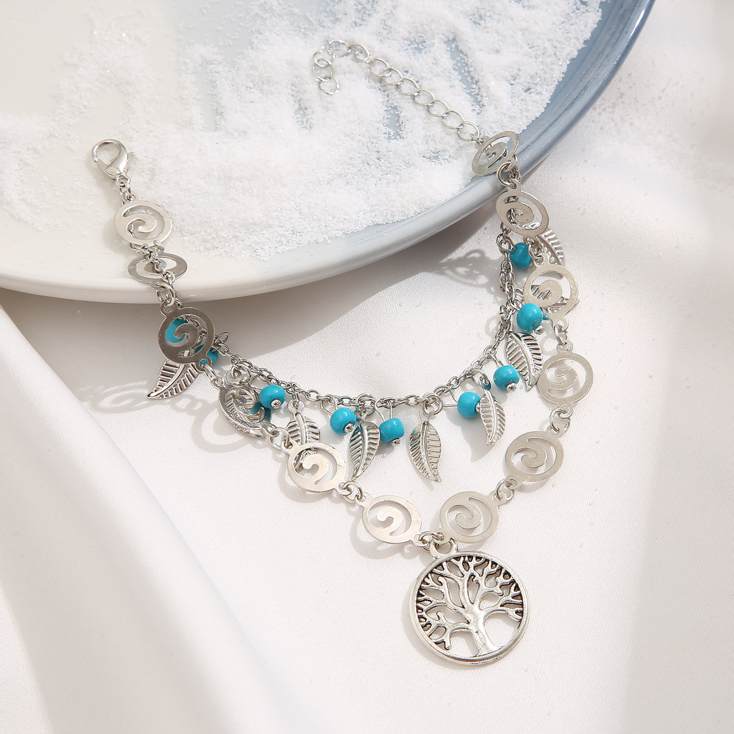 Zinc Alloy Anklet with turquoise Tree plated Double Layer & Bohemian style & for woman Sold By PC