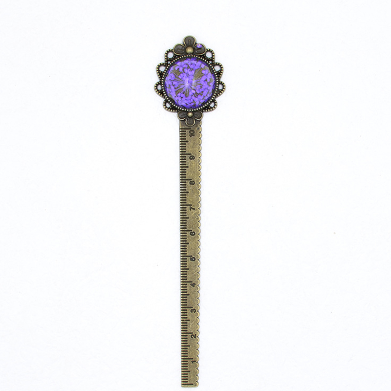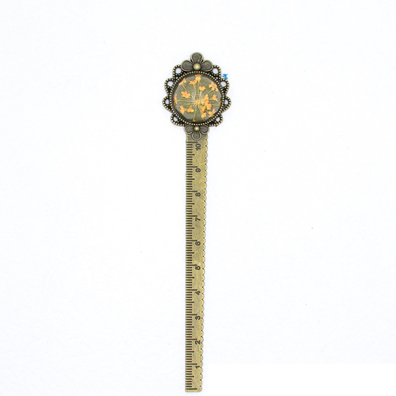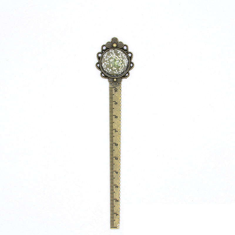 Zinc Alloy Bookmark with Dried Flower & Glass vintage & for woman antique gold color plated 140mm Sold By PC