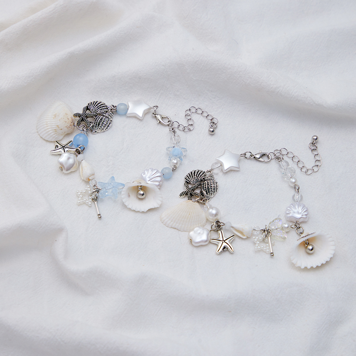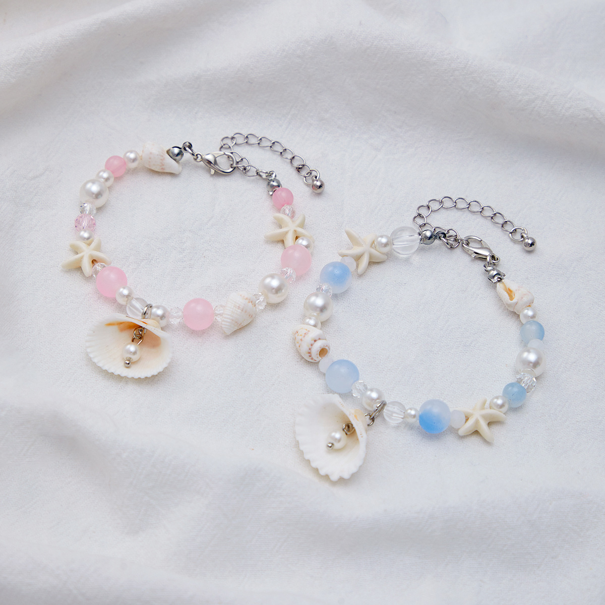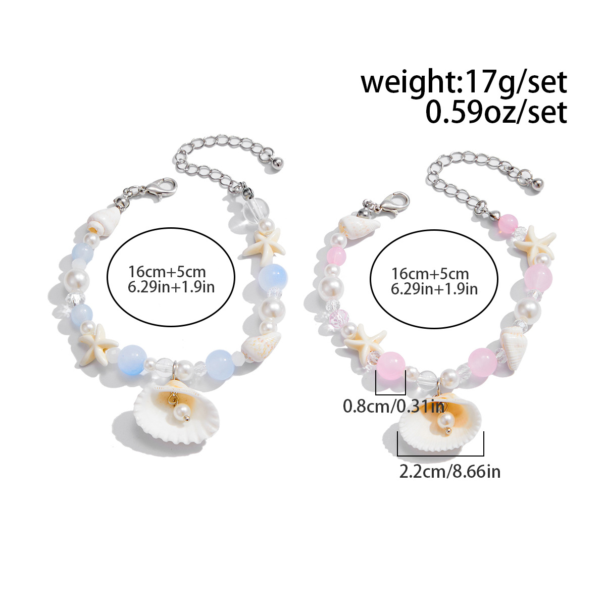 Zinc Alloy Bracelet with Shell & Plastic Pearl & Acrylic handmade 2 pieces & for woman platinum color Sold By Set