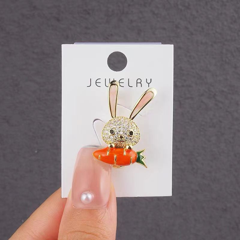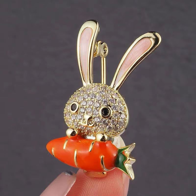 Zinc Alloy Brooches Rabbit gold color plated enamel & with rhinestone Sold By PC
