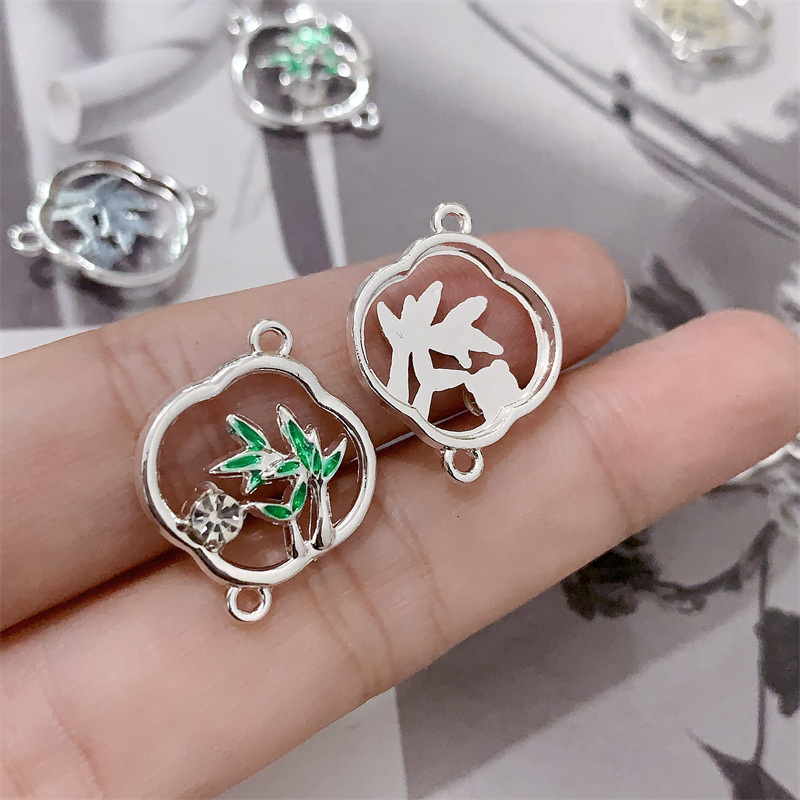 Zinc Alloy Connector plated DIY & enamel & with rhinestone & 1/1 loop Sold By Bag