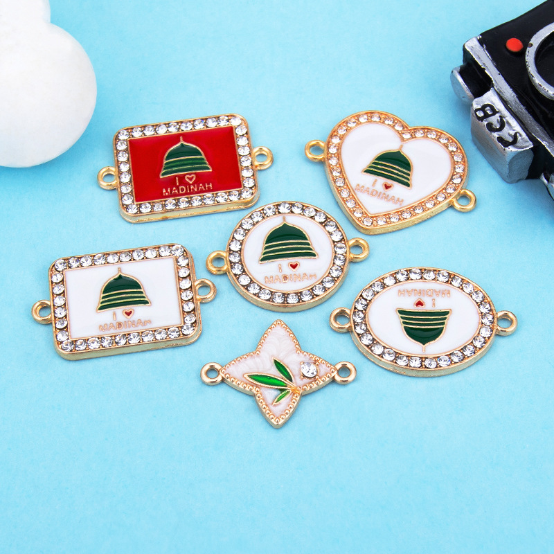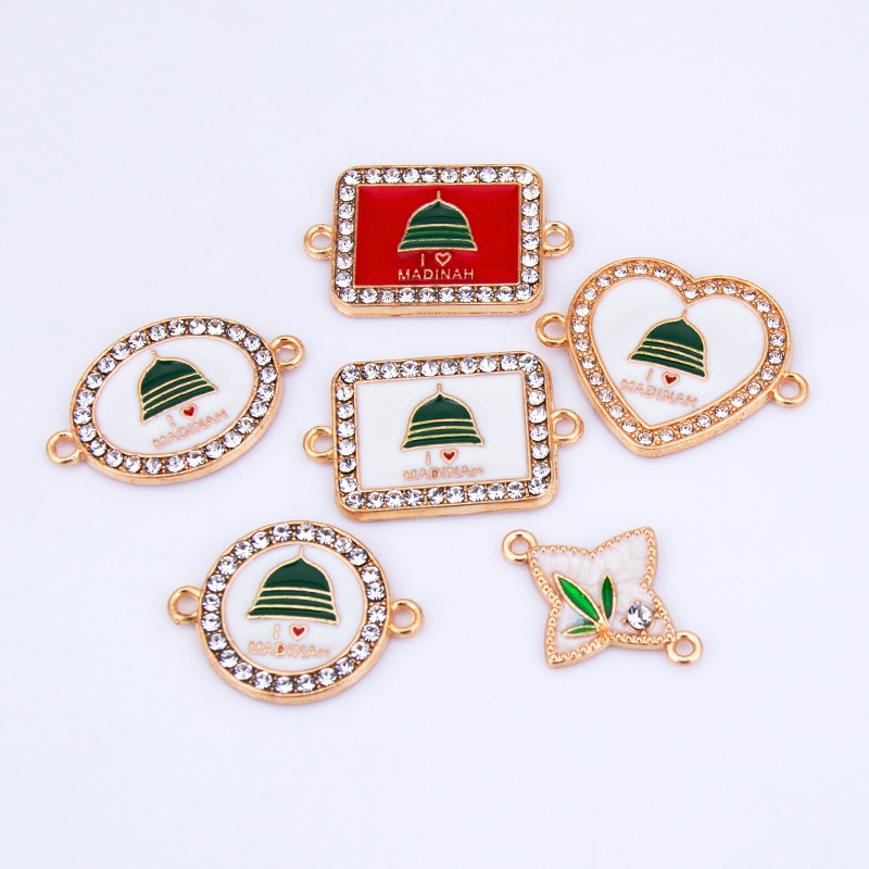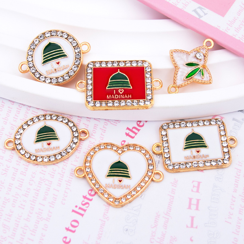Zinc Alloy Connector plated DIY & enamel & with rhinestone & 1/1 loop Sold By PC