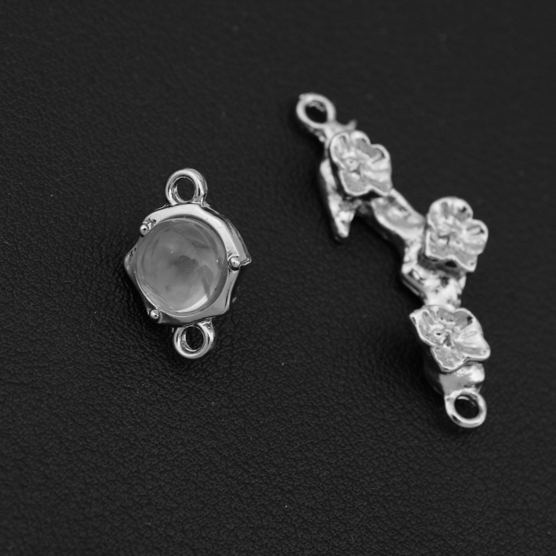 Zinc Alloy Connector silver color plated DIY & with rhinestone & 1/1 loop silver color Sold By PC
