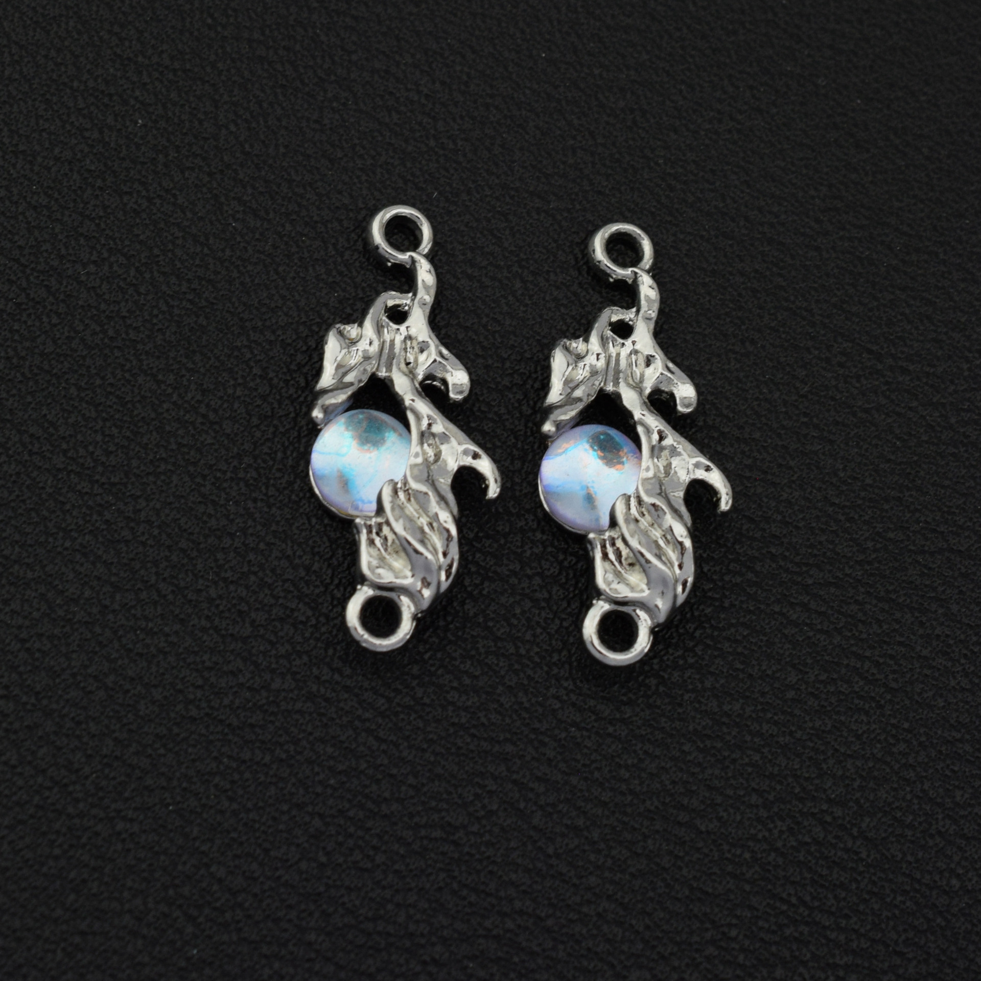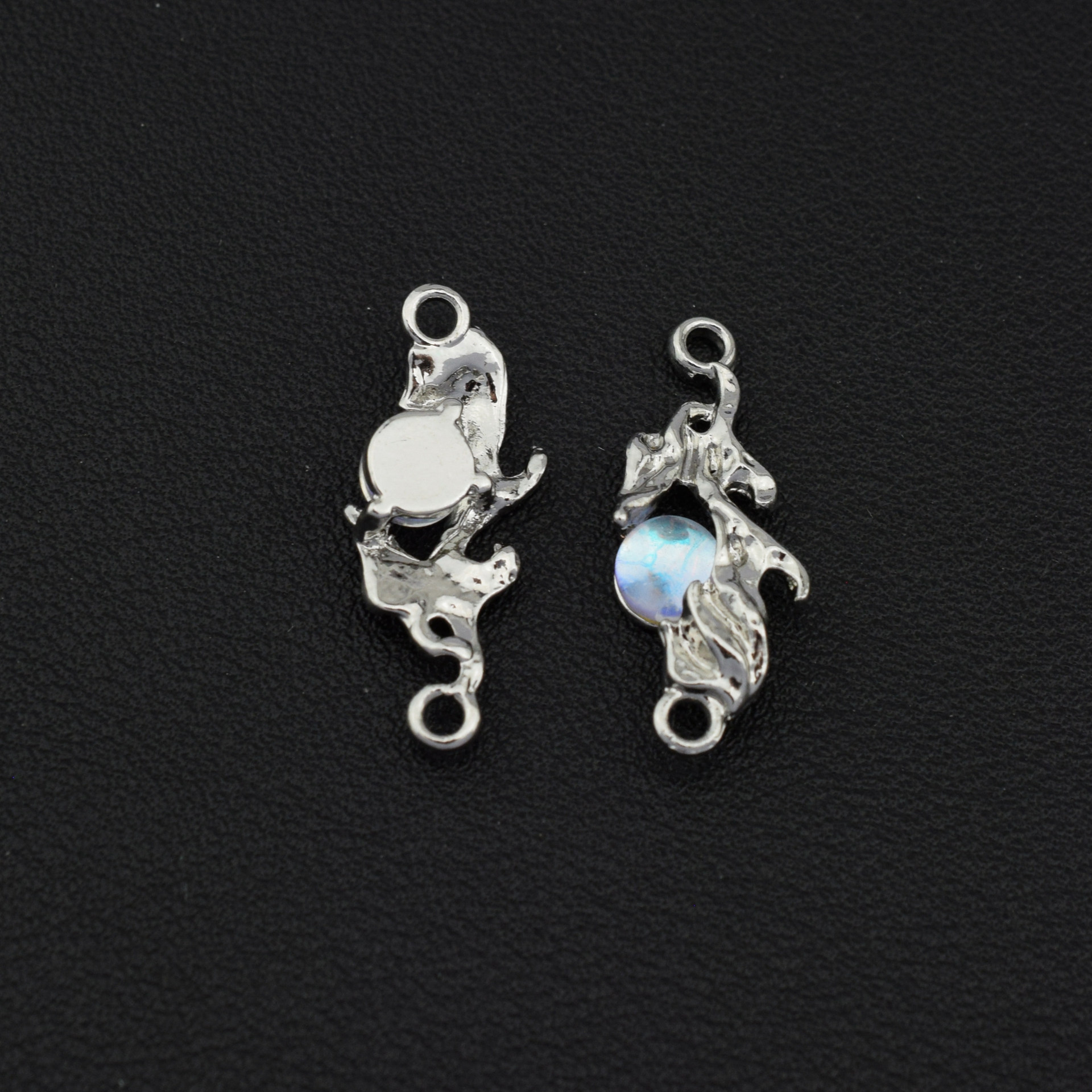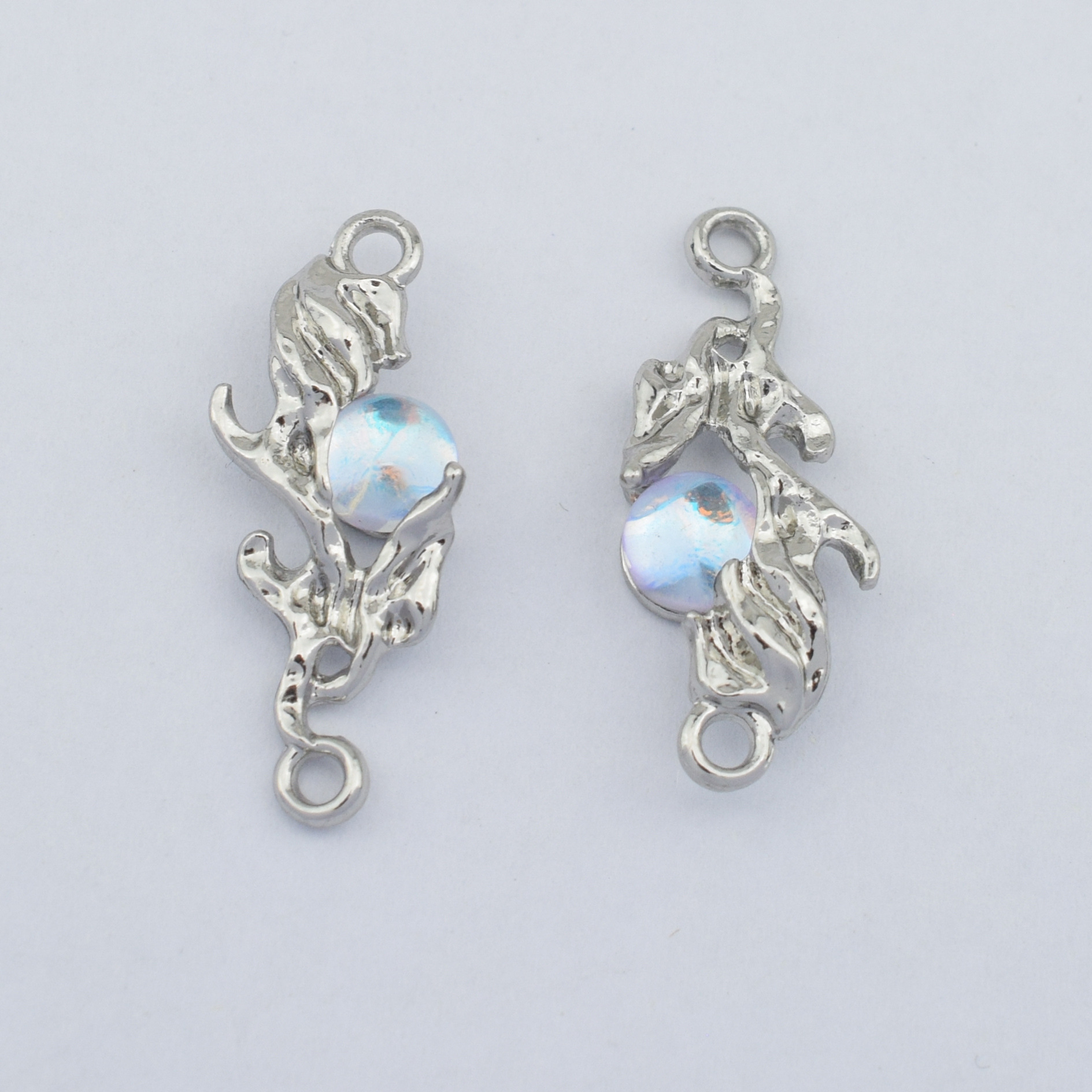 Zinc Alloy Connector with Cats Eye silver color plated DIY & 1/1 loop silver color Sold By PC