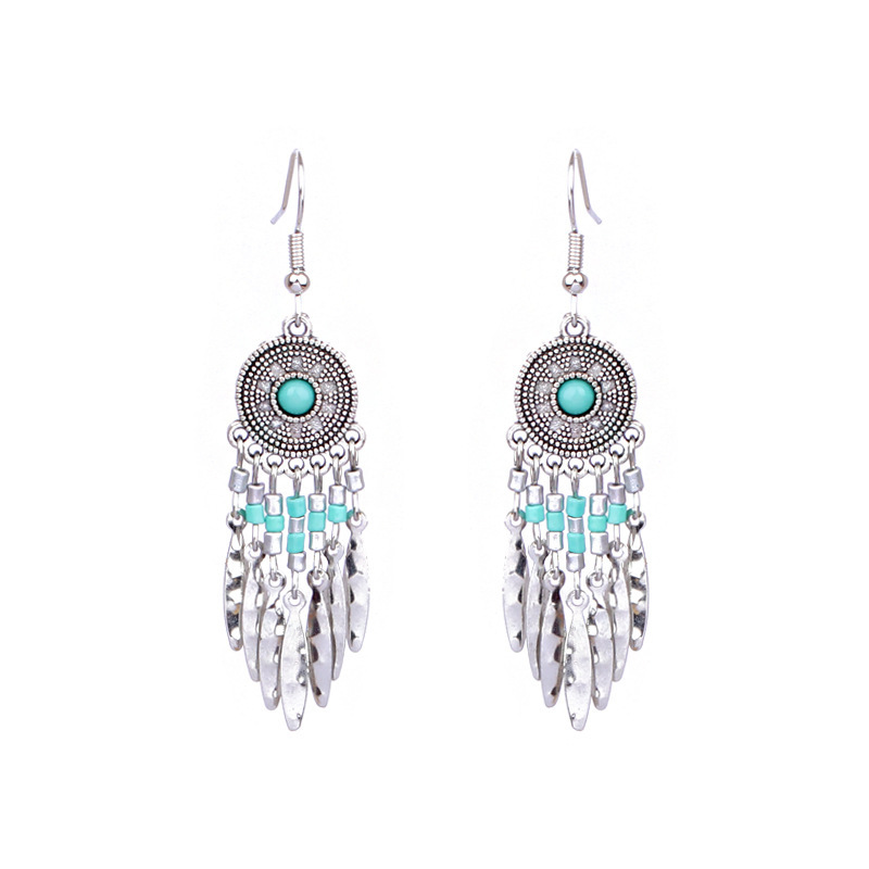 Zinc Alloy Drop Earring with Turquoise plated & for woman & enamel earring length 50-110mm Sold By Pair