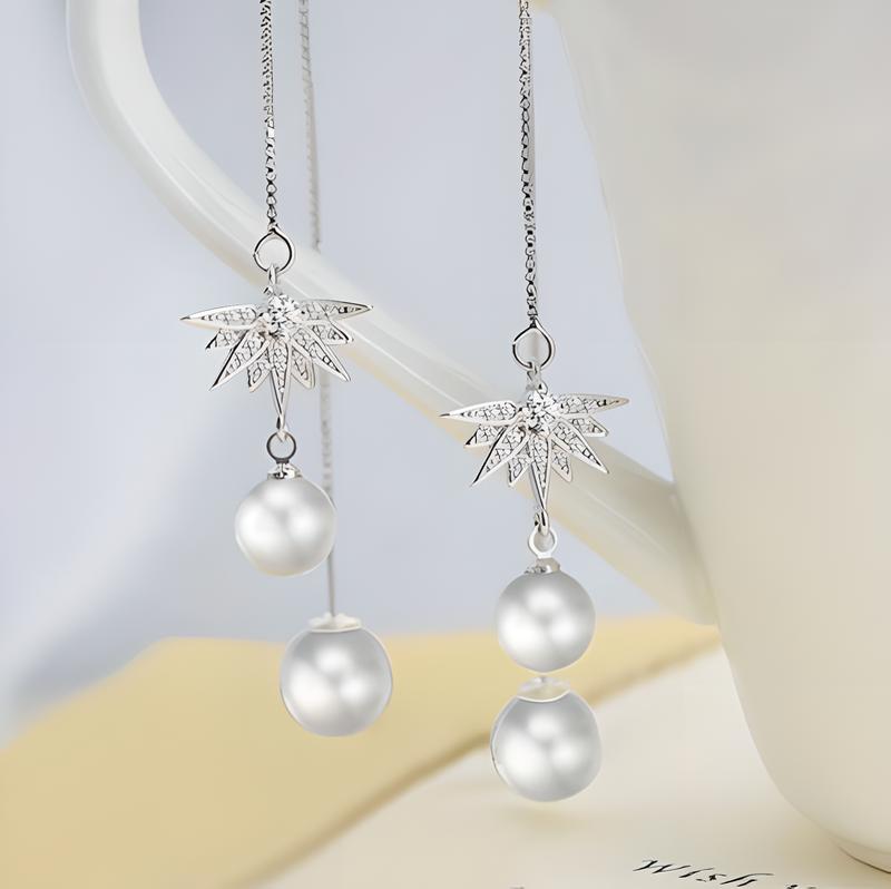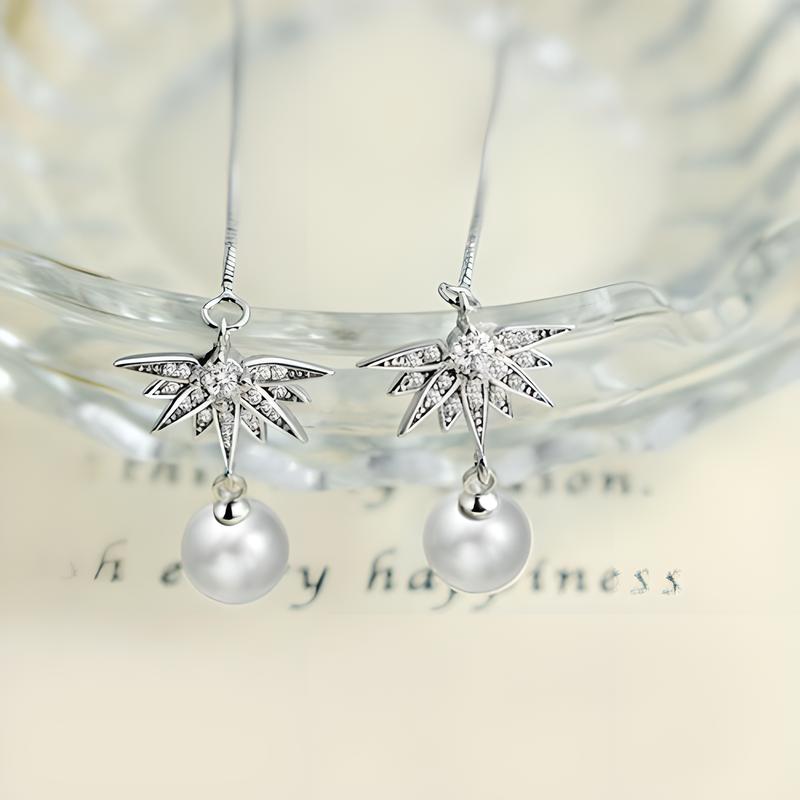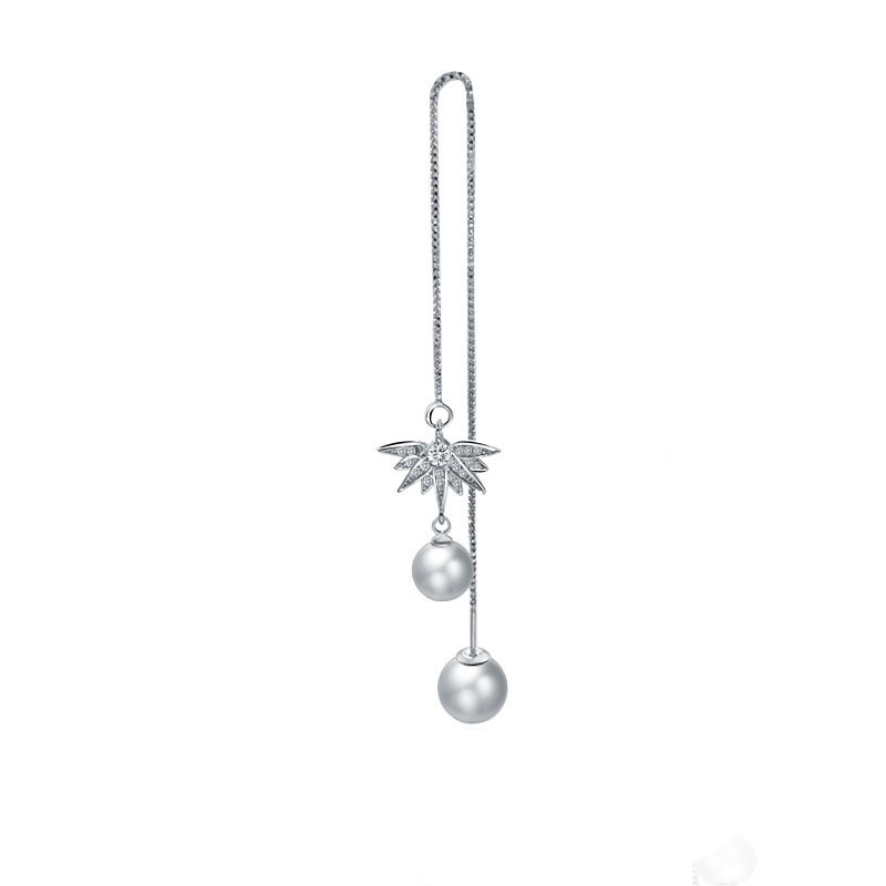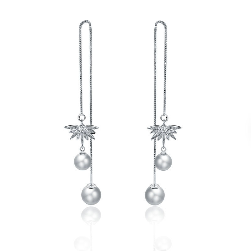 Zinc Alloy Thread Through Earrings with Plastic Pearl platinum color plated for woman & with rhinestone 100mm Sold By Pair