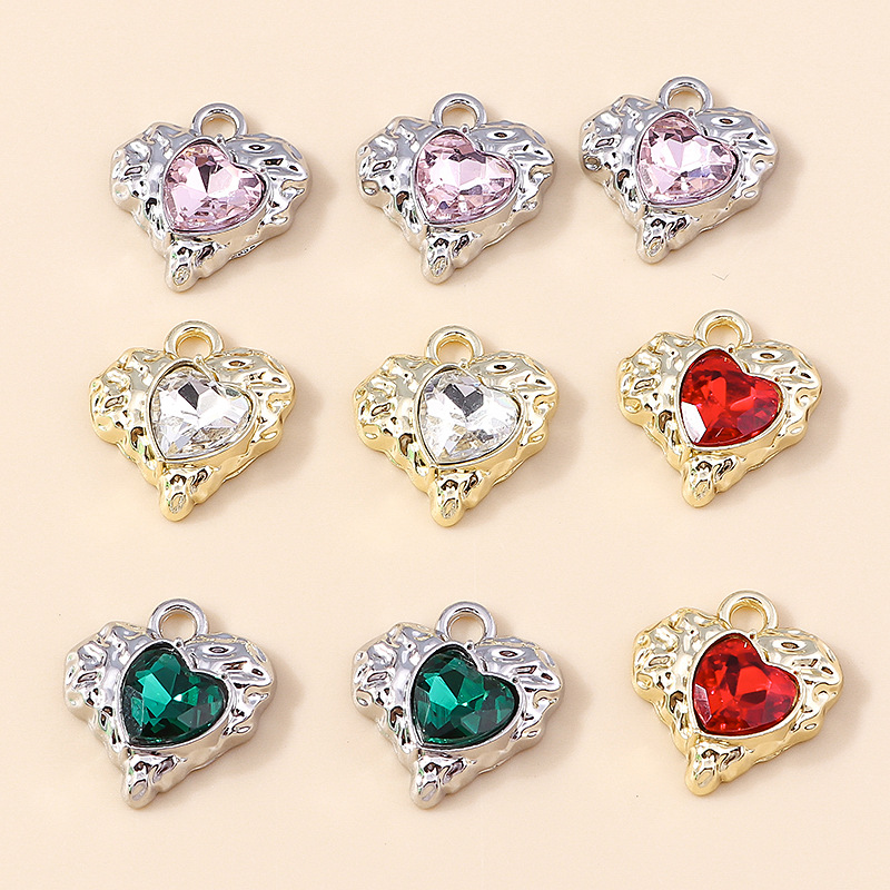 Zinc Alloy Heart Pendants with Cubic Zirconia plated DIY Sold By Bag
