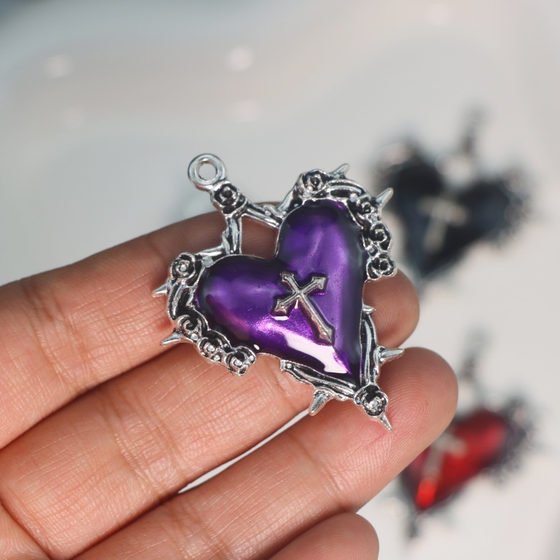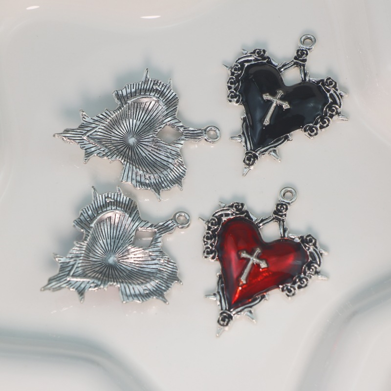 Zinc Alloy Heart Pendants with Gemstone Heart and Cross plated DIY Sold By Set