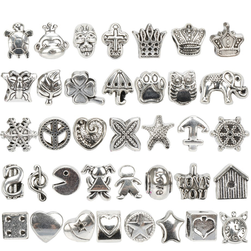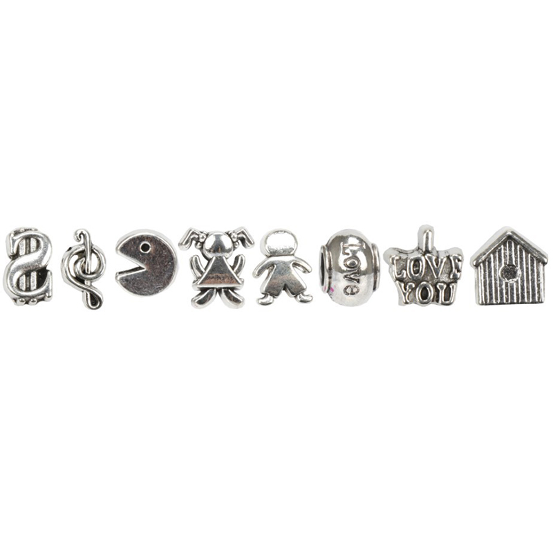 Zinc Alloy Jewelry Beads silver color plated mixed pattern & DIY 15mm Sold By Set