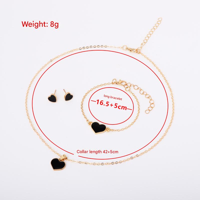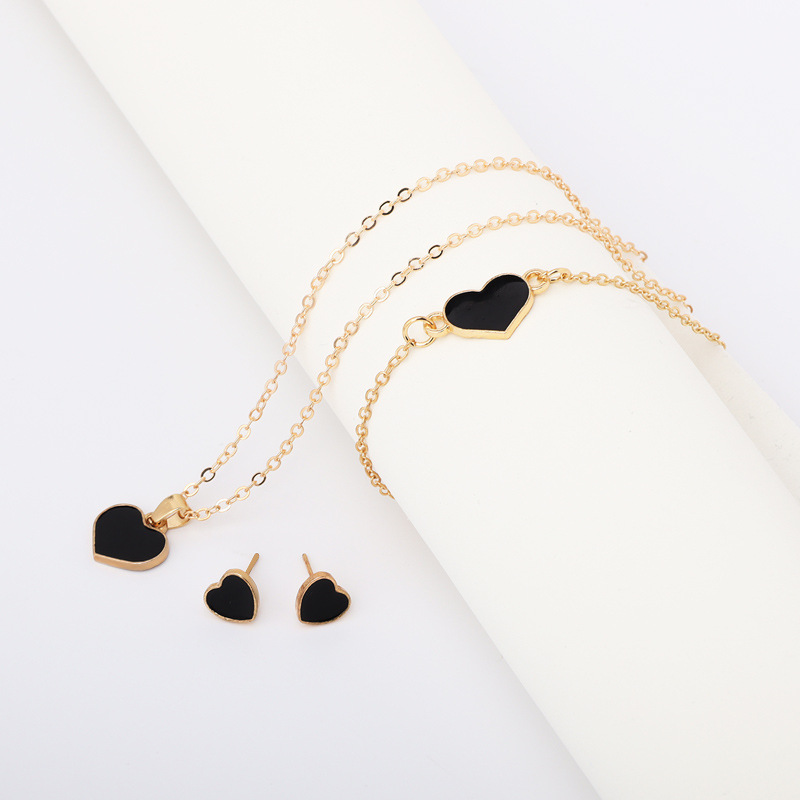 Zinc Alloy Jewelry Set Stud Earring & bracelet & necklace Heart gold color plated three pieces & for woman & enamel Sold By Set