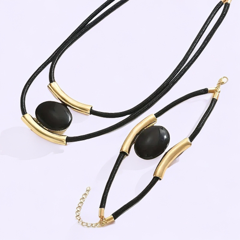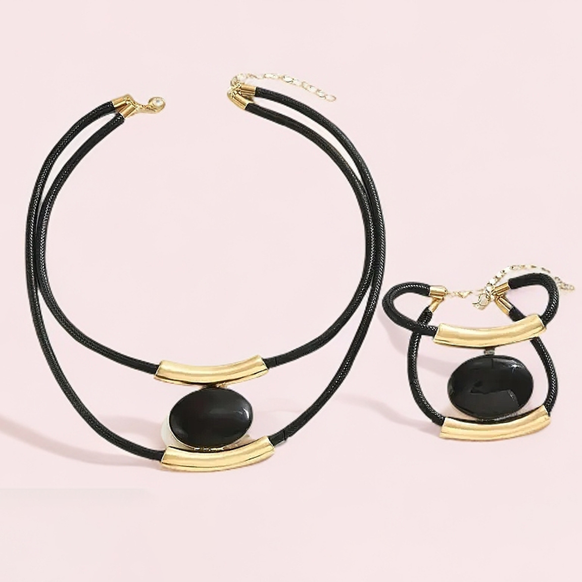Zinc Alloy Jewelry Sets bracelet & necklace with Wax Cord & Acrylic 2 pieces & for woman & hollow Sold By Set