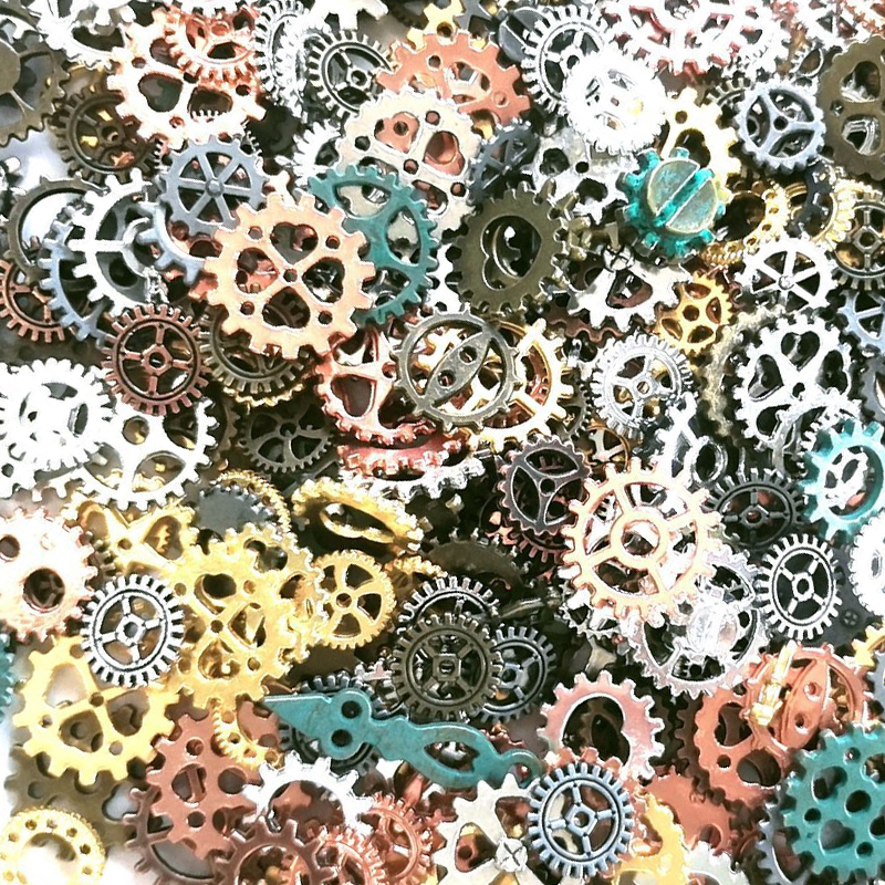 Zinc Alloy Pendants Gear Wheel plated mixed pattern & DIY mixed colors pendant length 10-40mm Sold By Bag