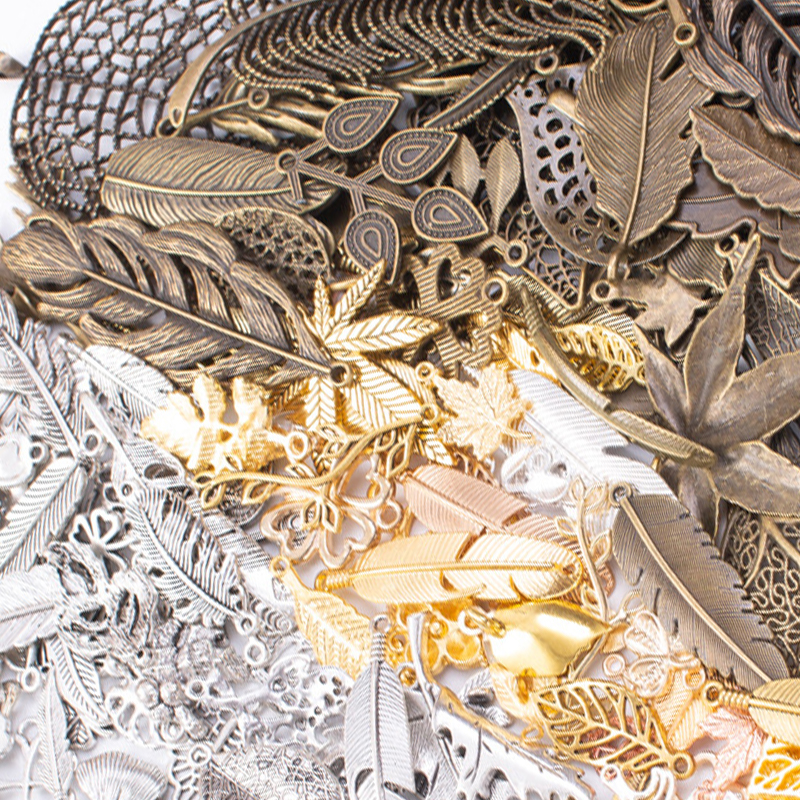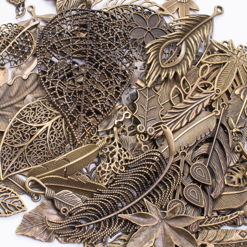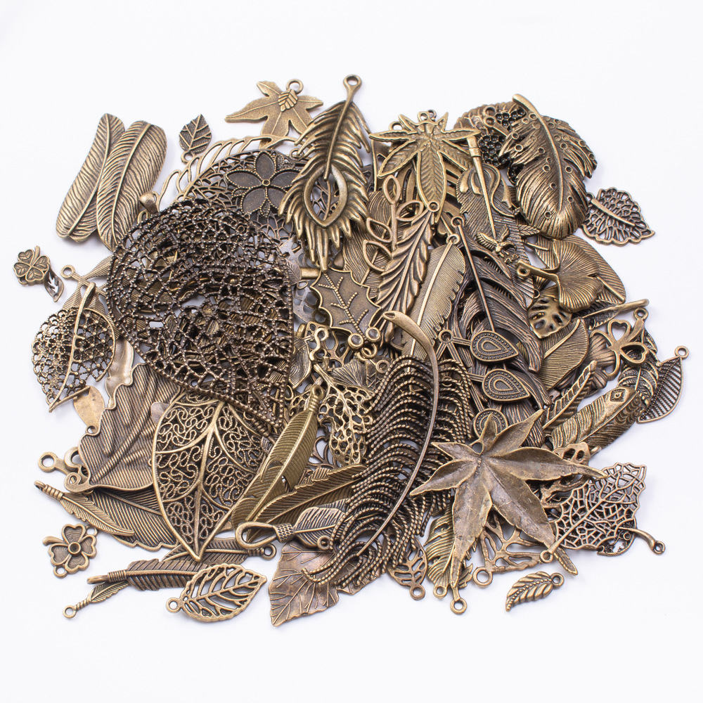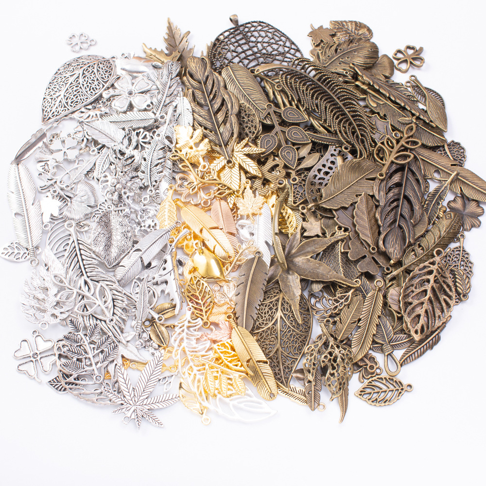 Zinc Alloy Pendants Leaf plated mixed pattern & DIY pendant length 20-150mm Sold By Bag