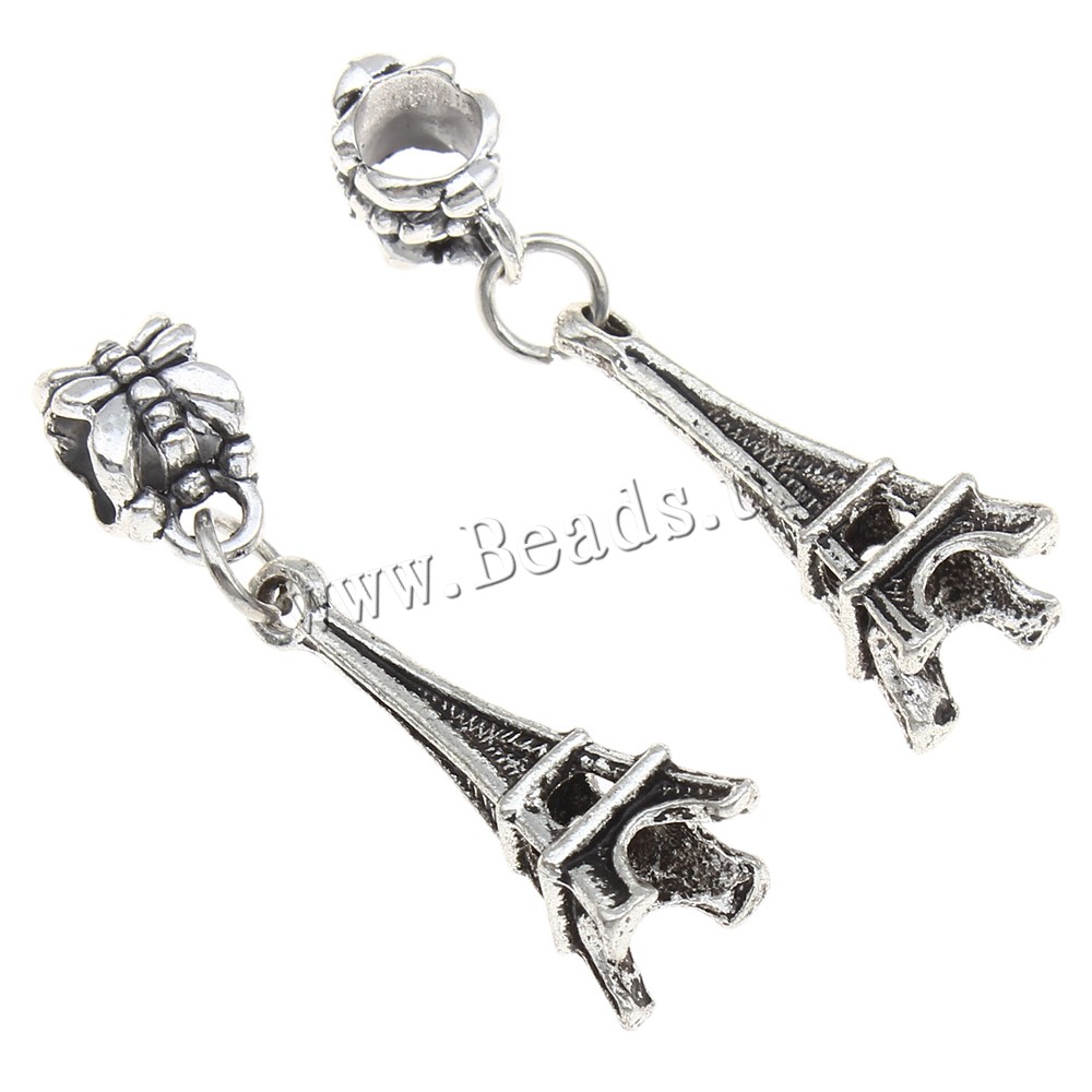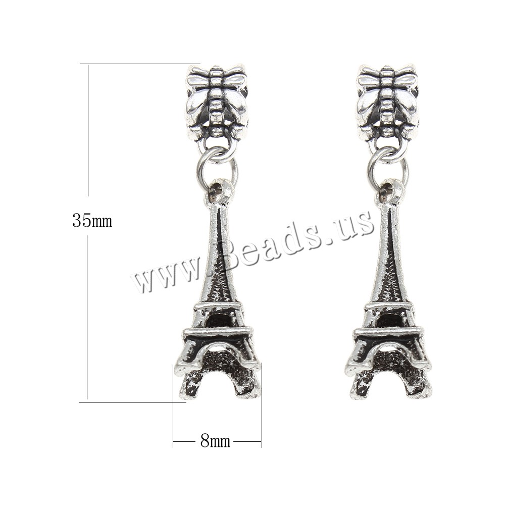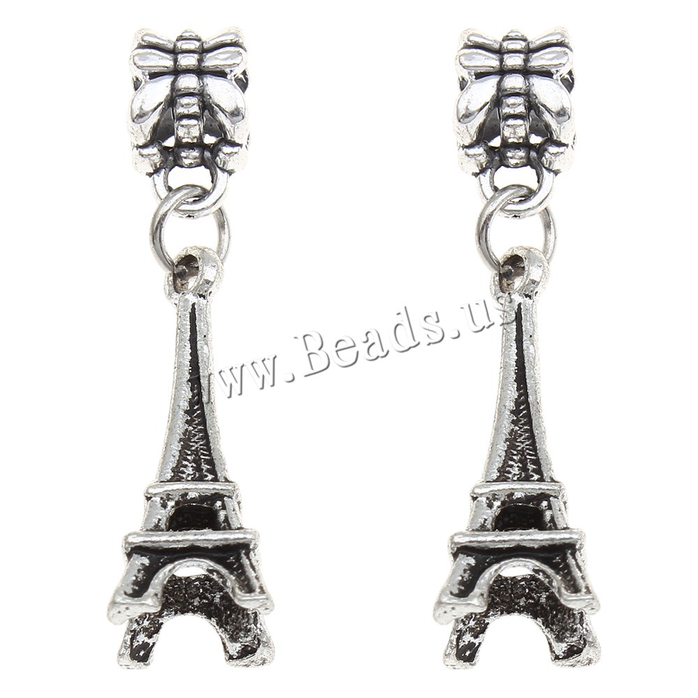 European Style Zinc Alloy Dangle Beads Eiffel Tower antique silver color plated without troll lead & cadmium free Approx 4mm Sold By Bag