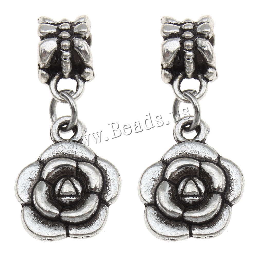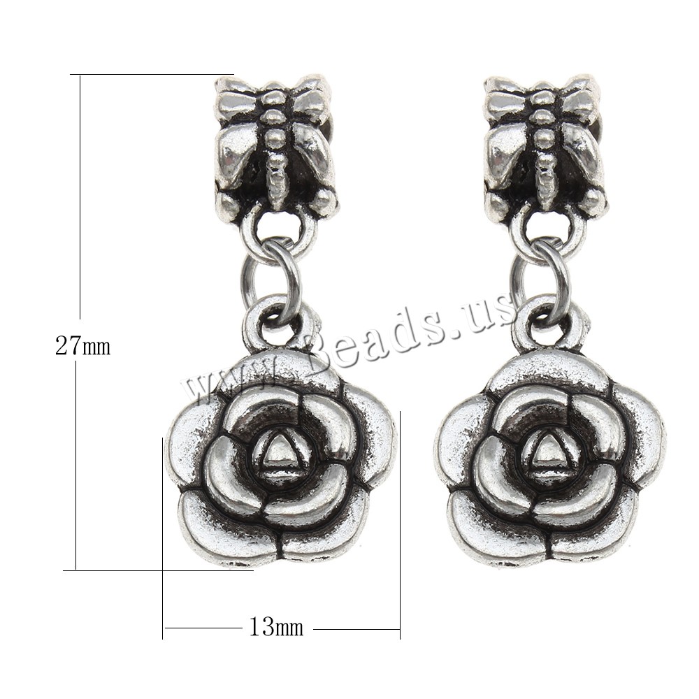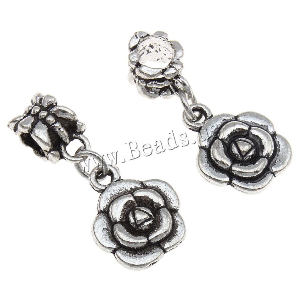 European Style Zinc Alloy Dangle Beads Flower antique silver color plated without troll lead & cadmium free Approx 4mm Sold By Bag