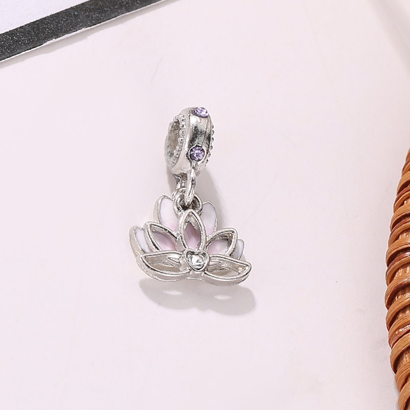 Zinc Alloy Rhinestone Pendants Lotus plated DIY & enamel & with rhinestone Sold By PC
