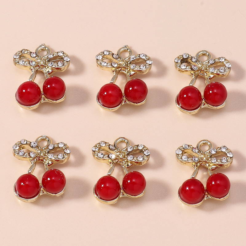 Zinc Alloy Rhinestone Pendants Cherry plated DIY & enamel & with rhinestone Sold By Bag