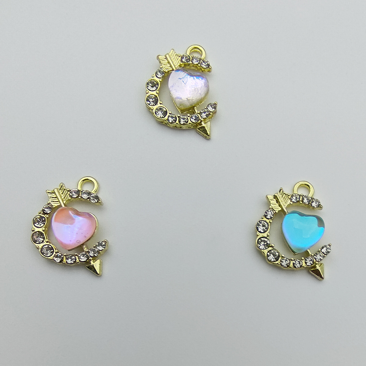 Zinc Alloy Rhinestone Pendants Heart gold color plated DIY & with rhinestone Sold By Bag