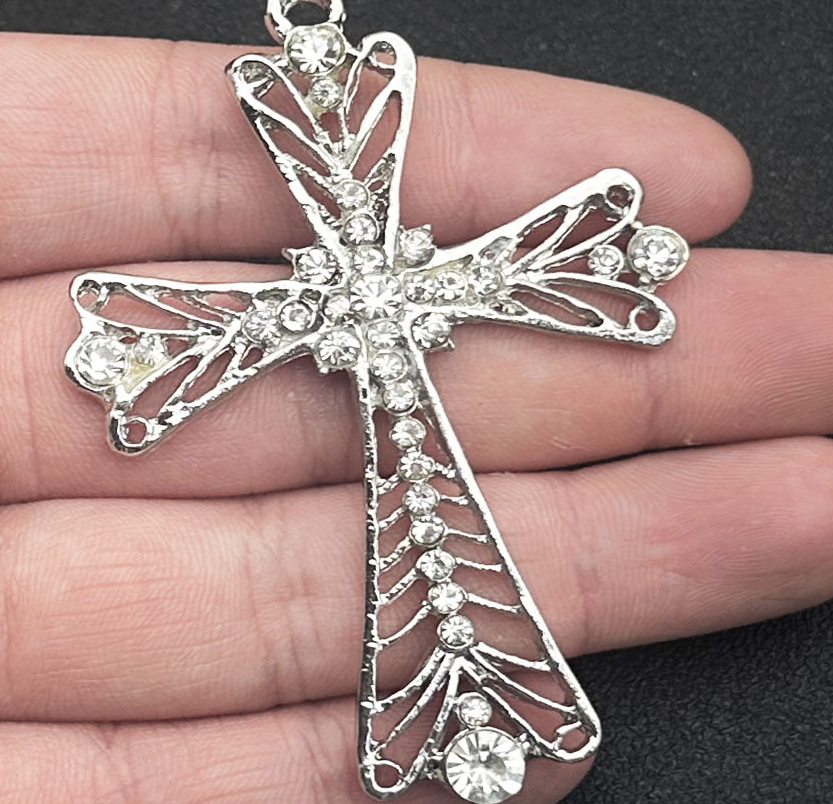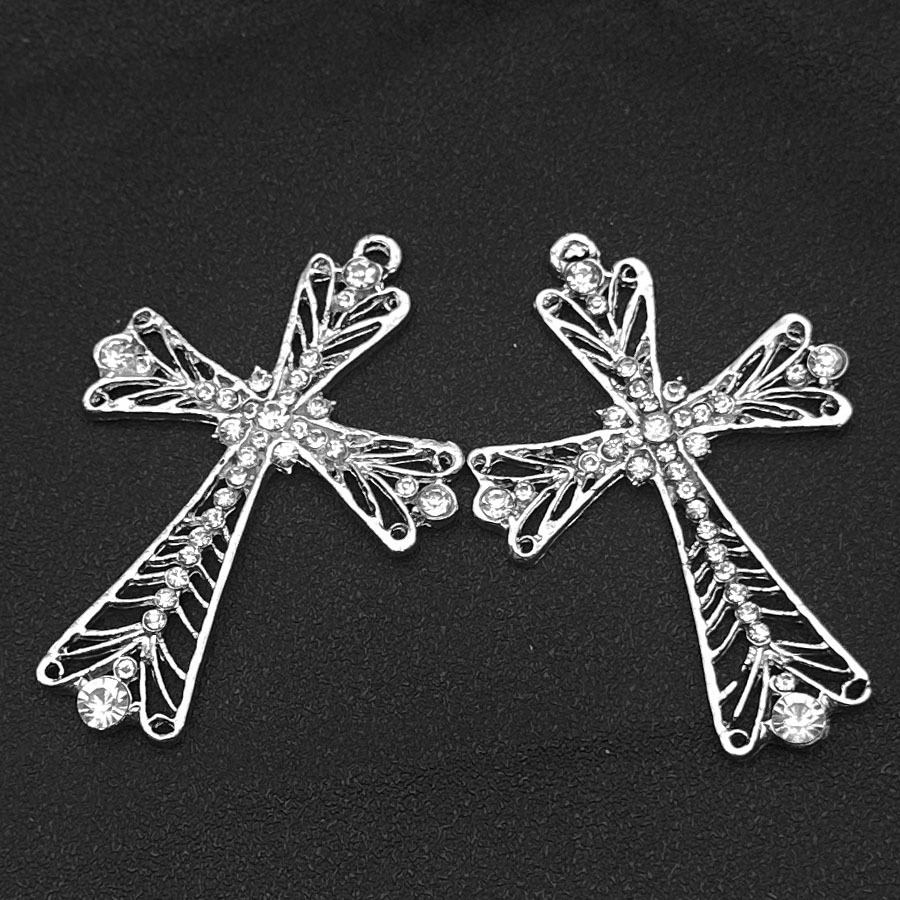 Zinc Alloy Rhinestone Pendants Cross silver color plated DIY & with rhinestone silver color Sold By PC