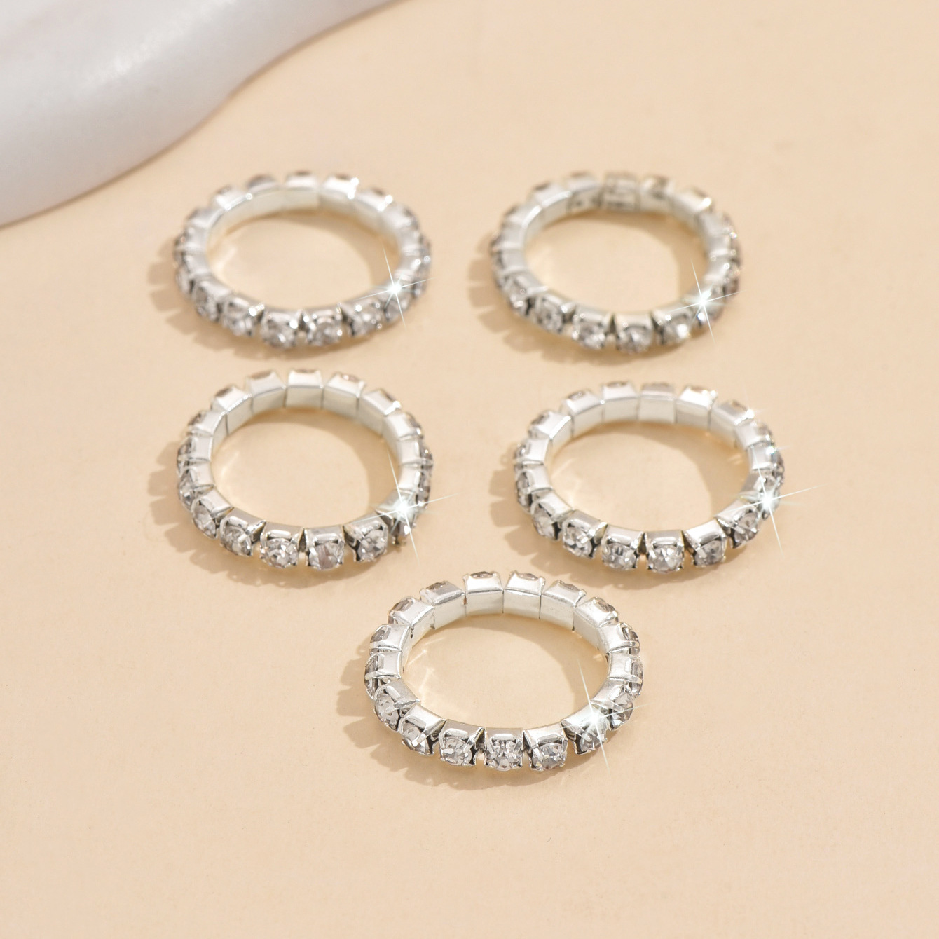 Zinc Alloy Ring Set silver color plated 5 pieces & elastic & for woman & with rhinestone US Ring Sold By Set