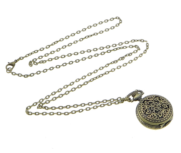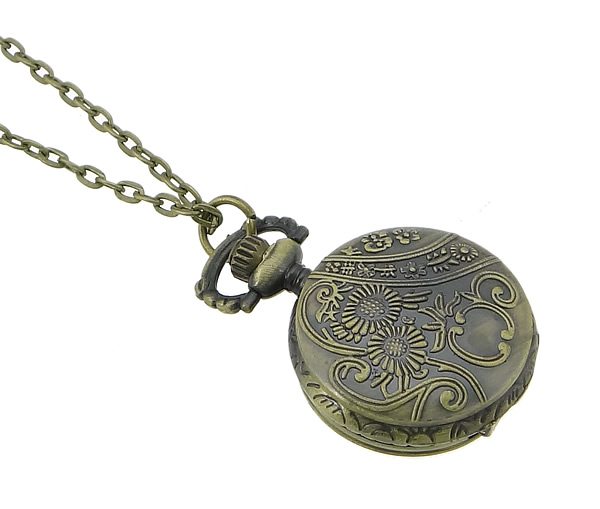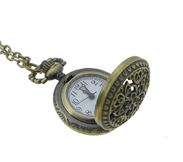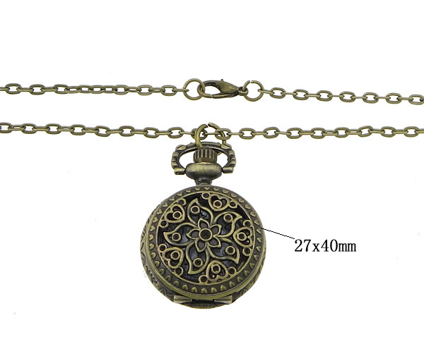 Fashion Watch Necklace Zinc Alloy Flat Round antique bronze color plated twist oval chain & waterproof nickel lead & cadmium free Length Approx 31.5 Inch Sold By Lot