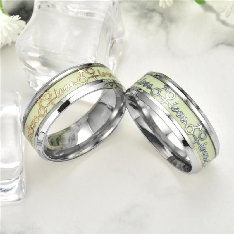Aço inoxidável 304 anel, banhado, unissex & tamanho diferente para a escolha & com padrão de carta & luminosa, Mais cores pare escolha, tamanho:6-13, vendido por PC